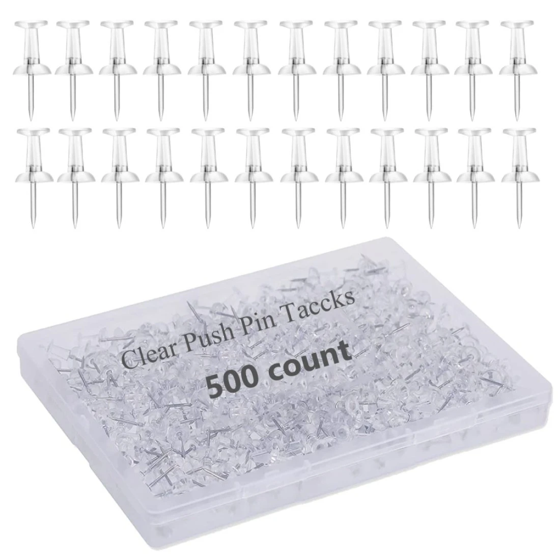 500 Count Push Pins for Bulletin Board, Clear Map Thumb Tacks, Plastic Head Steel Pins with Sharp Point for Wall Cork Board, Map Calendar Photo Crafts and Office Organization