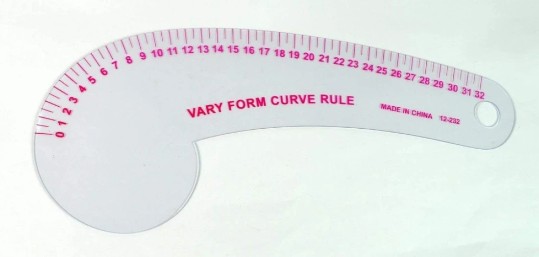 Professionally used by the pattern maker in drawing armholes, sleeve caps, necklines, collars and in adjusting waist and crotch fit of garments.