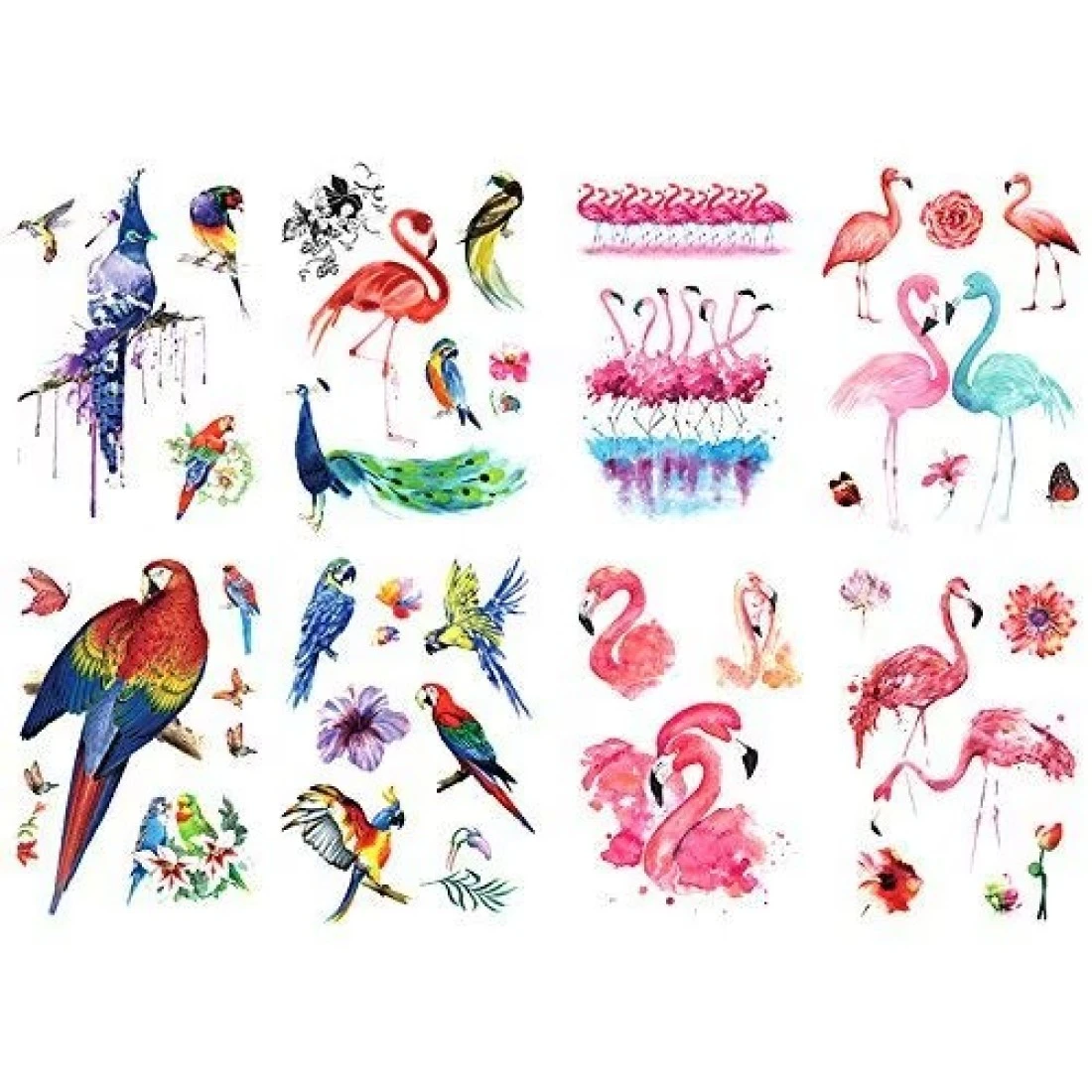 Oottati 8 Sheets Temporary Tattoo Stickers, Waterproof Arm Leg, Parrot Bird Peacock Macaw Pink Flamingo Butterfly Flower for Women