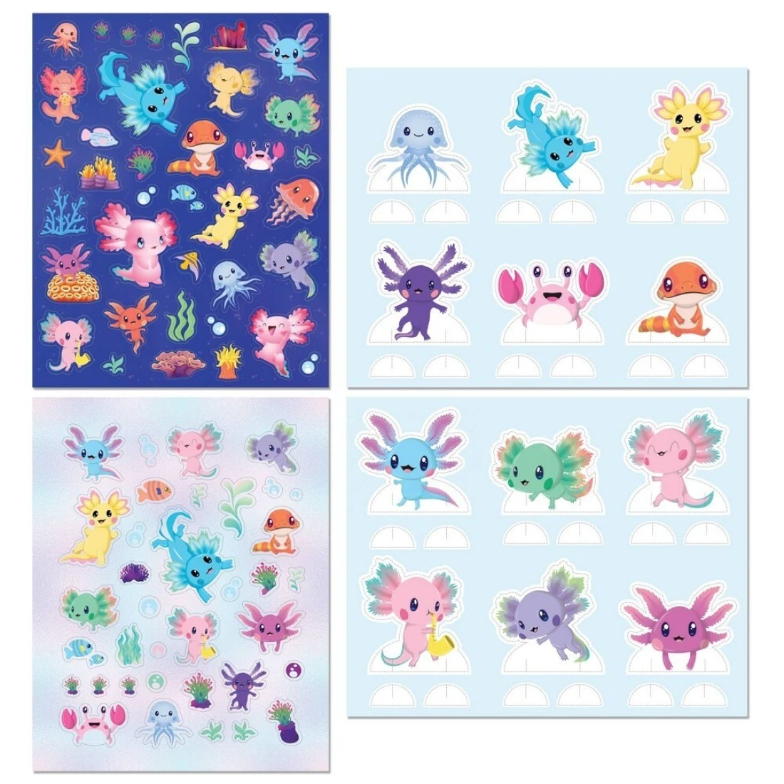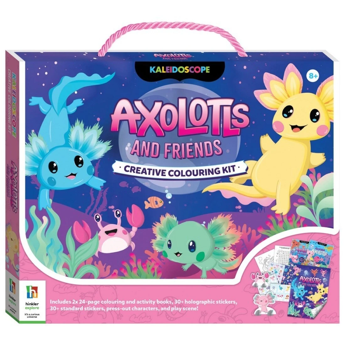 Hinkler Axolotls & Friends Creative Colouring Kit includes 2x24-page Colouring Book, 30+ Holographic Stickers, 30+ Standard Stickers,