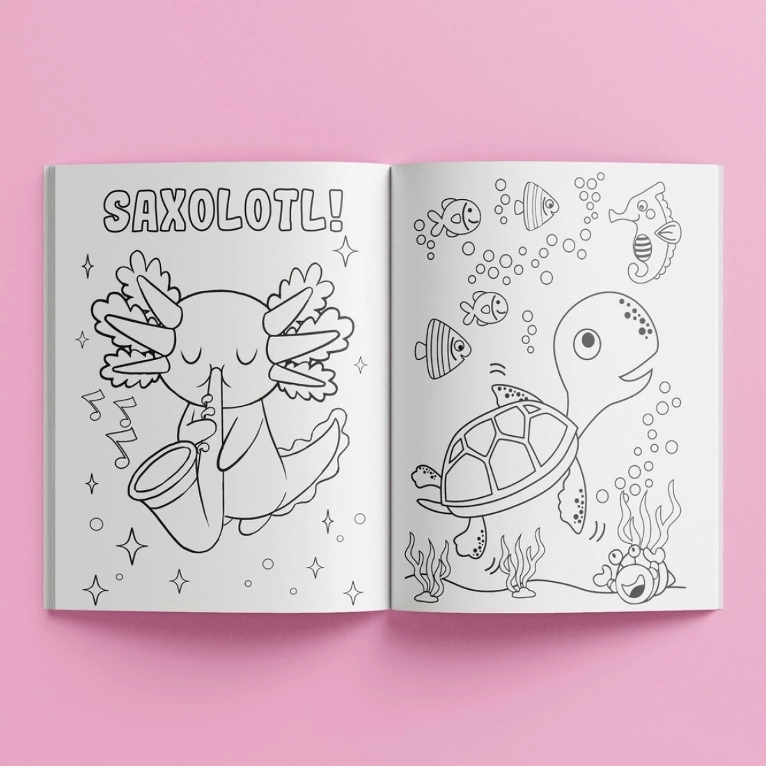 • Two 24-Page Colouring Books: Filled with cute and detailed illustrations of axolotls and other aquatic creatures, providing hours of colouring enjoyment.