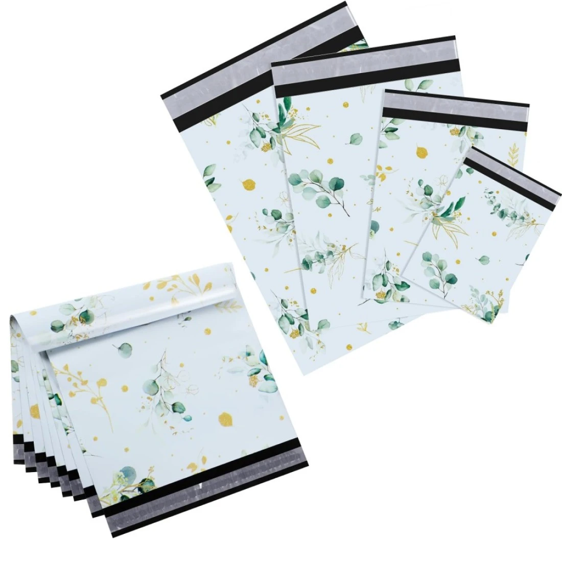 Outus 120 Pieces Poly Mailer Envelope Christmas Shipping Gift Bags Self Adhesive Clasp Envelope Self Adhesive Tear Proof Mailing Envelopes, 8x12in, 10x14in, 13x18in, 15x20in(Multicolored,Eucalyptus)