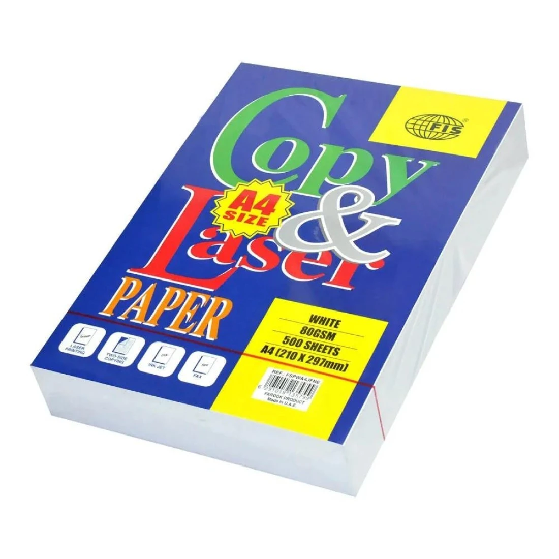 FIS Copy & Laser Photocopy Paper, 500 Sheets, White, 80 gsm, A4 (210 x 297 mm) Size - FSPWA4JFNE