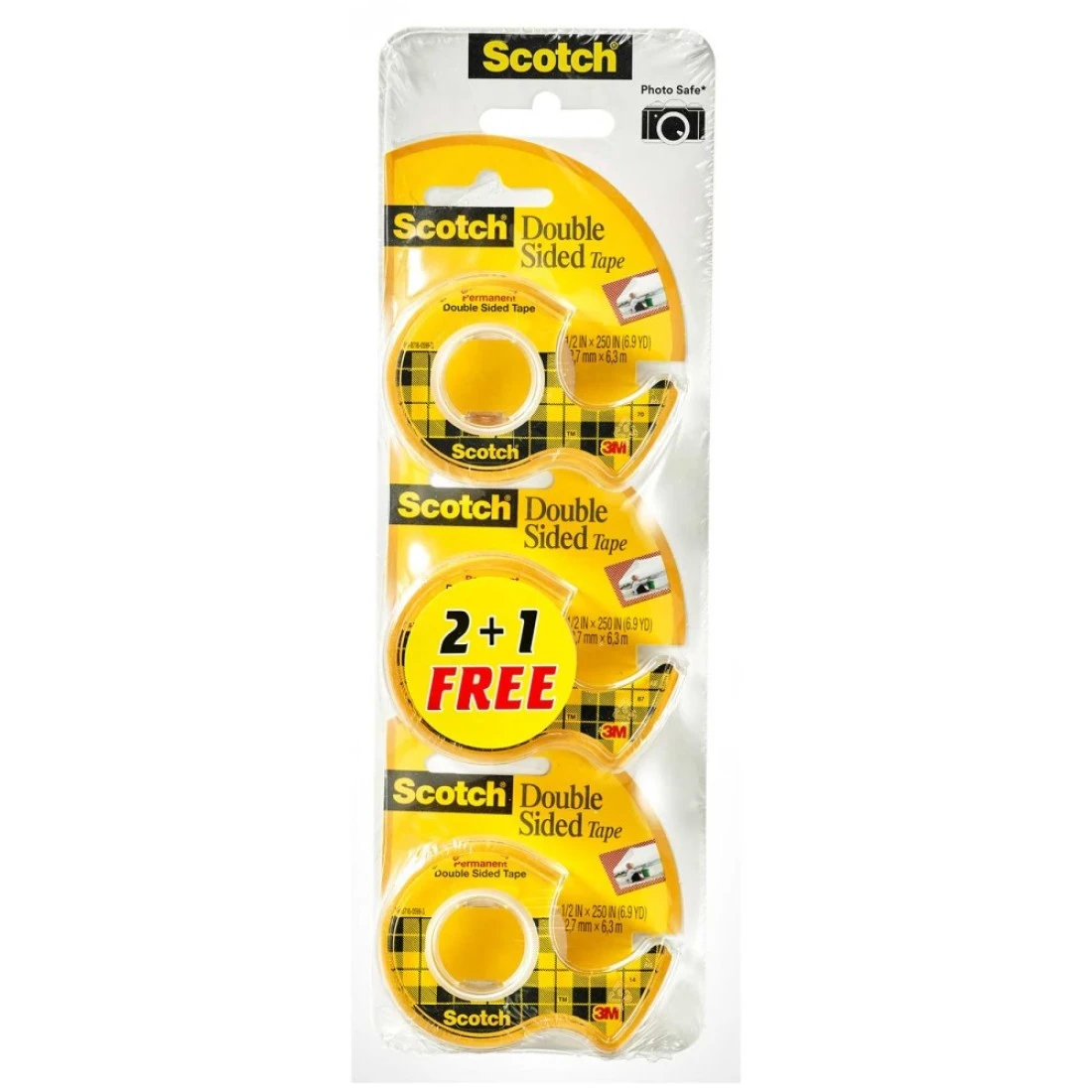 3M Scotch Double Sided Tape with Dispenser Yellow 3 PCS