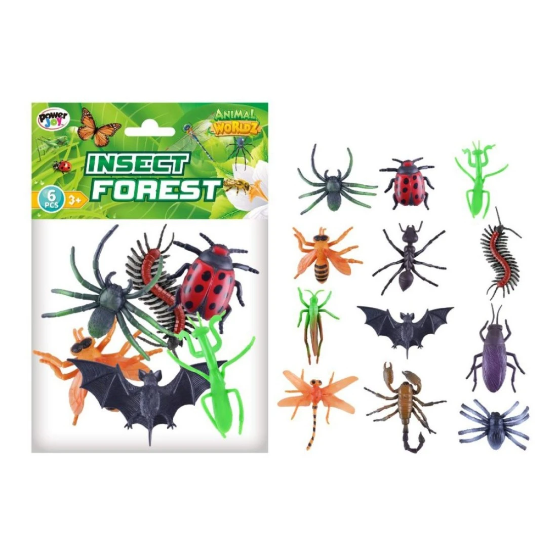 Power Joy Animal Worldz Insect Forest Animal Figure Toy 4inch 6 PCS
