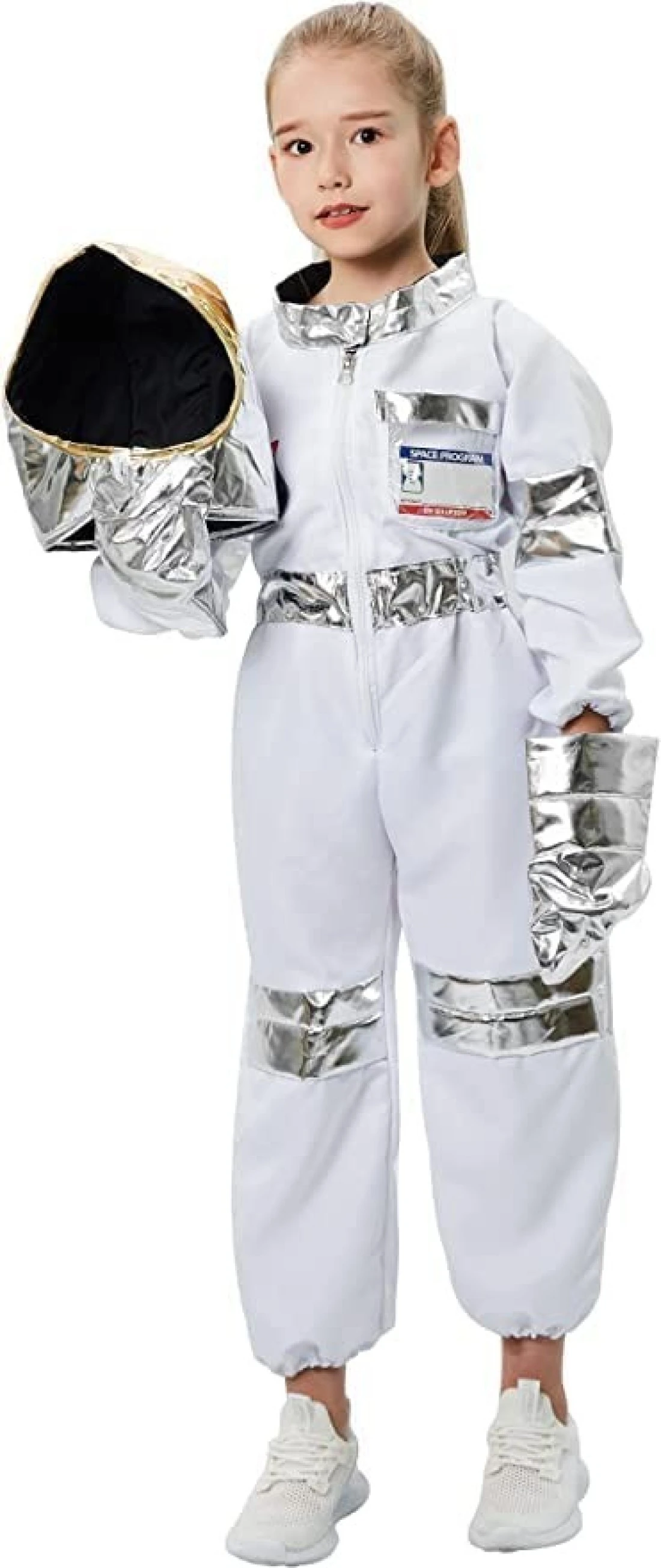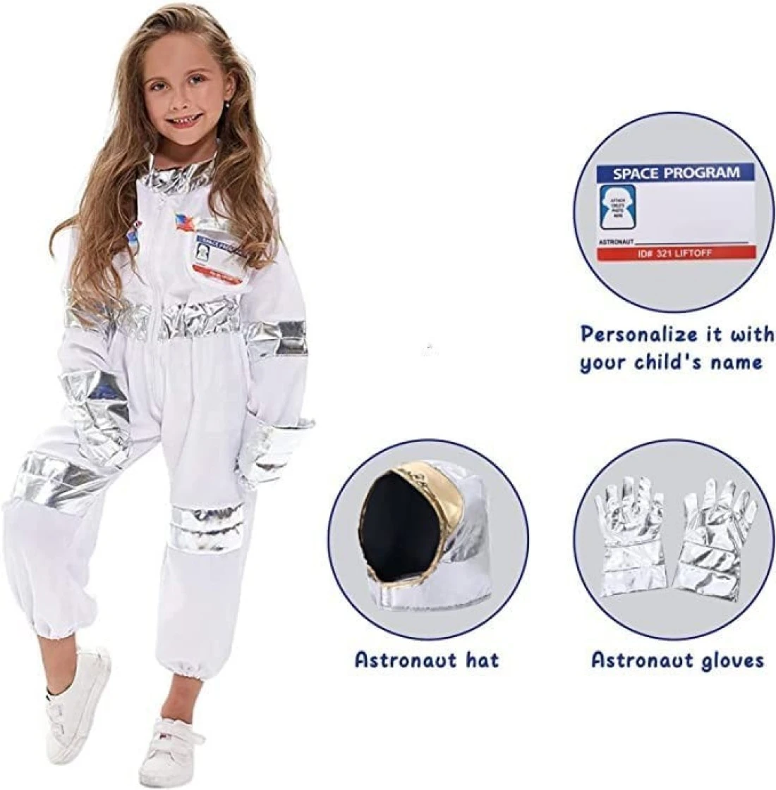 AUTHENTIC AND REALISTIC LOOKING: Authentic look and feel the part of real astronauts! Toddler astronaut costumeset includes a super cute astronauts jumpsuit, gloves, shiny helmet, reusable personalized name tag, and a free America flag pin. Your kiddo will love it!