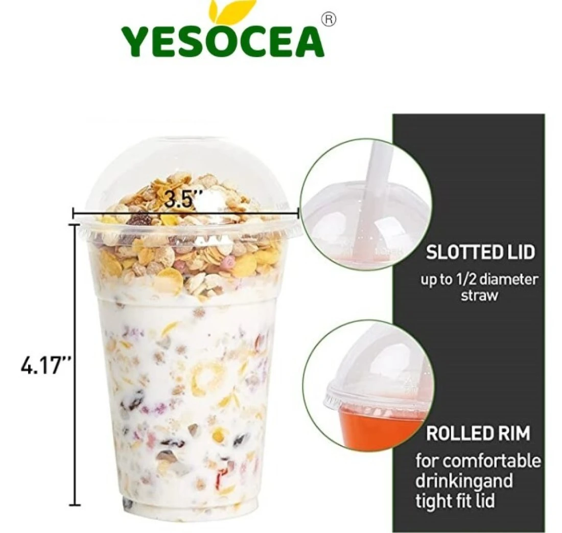 Yesocea [50 Pack] Premium Quality 12Oz Plastic Cups With Leak-Proof Dome Lids - Perfect For Outdoor Events And Parties
