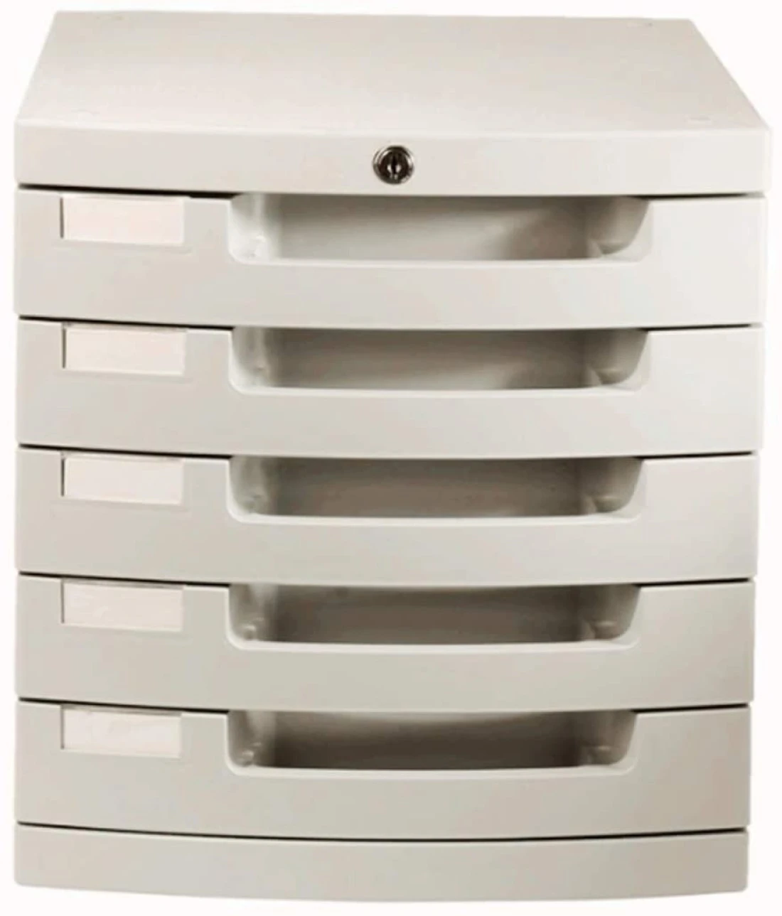 Features:5-drawer file cabinetDrawer with lockMaterials: Sturdy ABSColor: GreyPacking Dimension: 355*33*43.5cmGross Weight: 5.2KgNet Weight: 4.6kgSKU: EB-OSDC05Brand : MarvelManufacturer Number : MVL-DC05Type : File OrganizersAre batteries needed to power the product or is this product a battery : NoIs this a Dangerous Good or a Hazardous Material, Substance or Waste that is regulated for transportation, storage, and/or disposal? : No