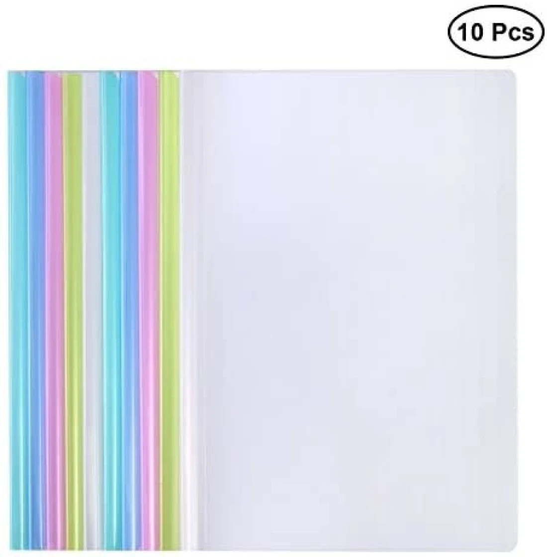 DescriptionThis file folder set fits for different occasions businessmen can use them to hold documents or files and students can use them to hold test papers. They can cover A4 size files and hold up paper of no more than 50mm thickness. Nonslip locking bar holds everything together and won't slide off the cover.Features Color White red yellow blue and green. Material PP. Size 30.5 x 21.5cm Transparent slide clamp match transparent sheets light and flexible suitable for all kinds of documents. These folders cover A4 size files including papers documentation test paper music books reasonable and effective arrangement together and then perfect and convenient to show you. Suitable for being used for schools enterprises and individuals on display etc. Nonslip locking bar holds everything together and won't slide off the cover. High capacity file holders. These report covers can hold files less than 0.5cm thickness.Box Including10 x File Folder