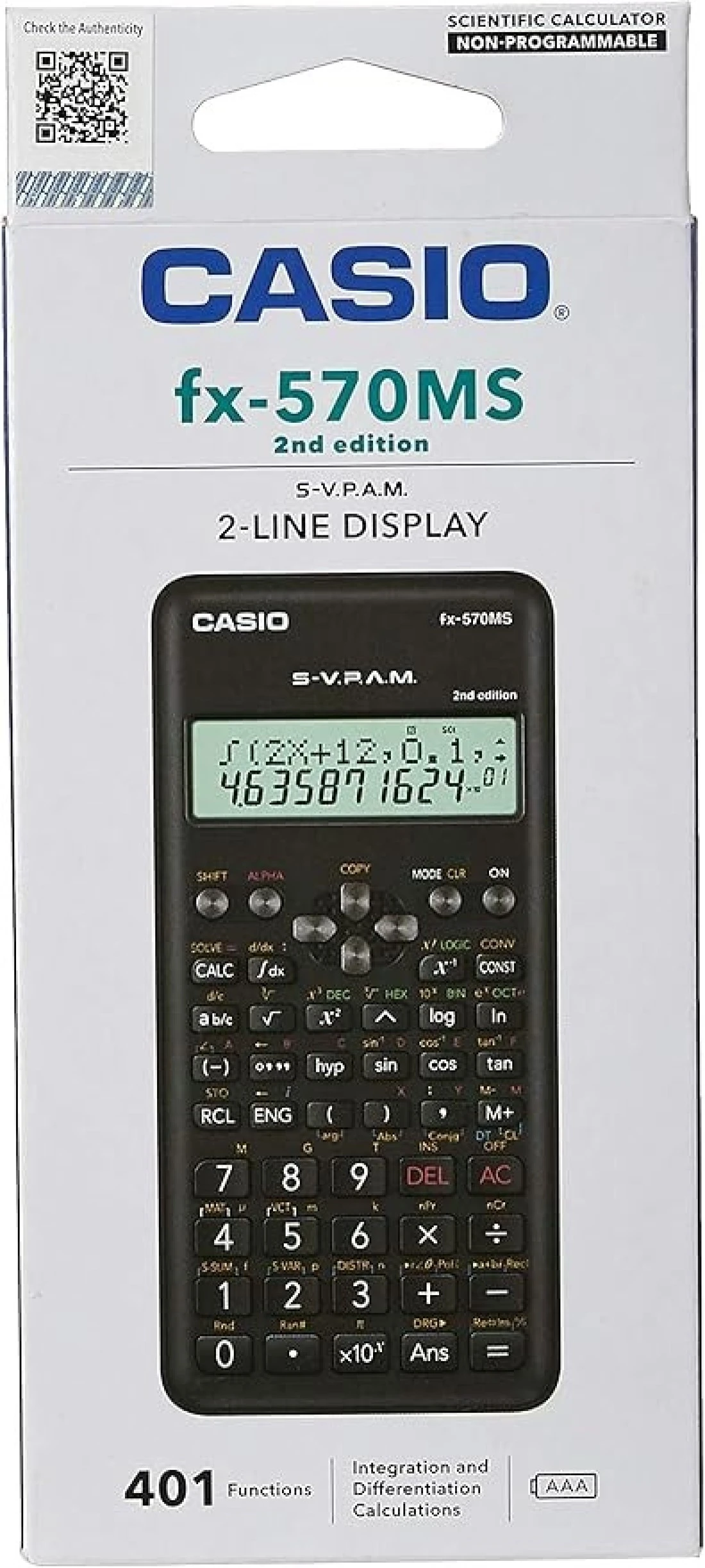 Casio Fx-570Ms 2Nd Edition Scientific Calculator With 2-Line Display, Fx 570 Ms