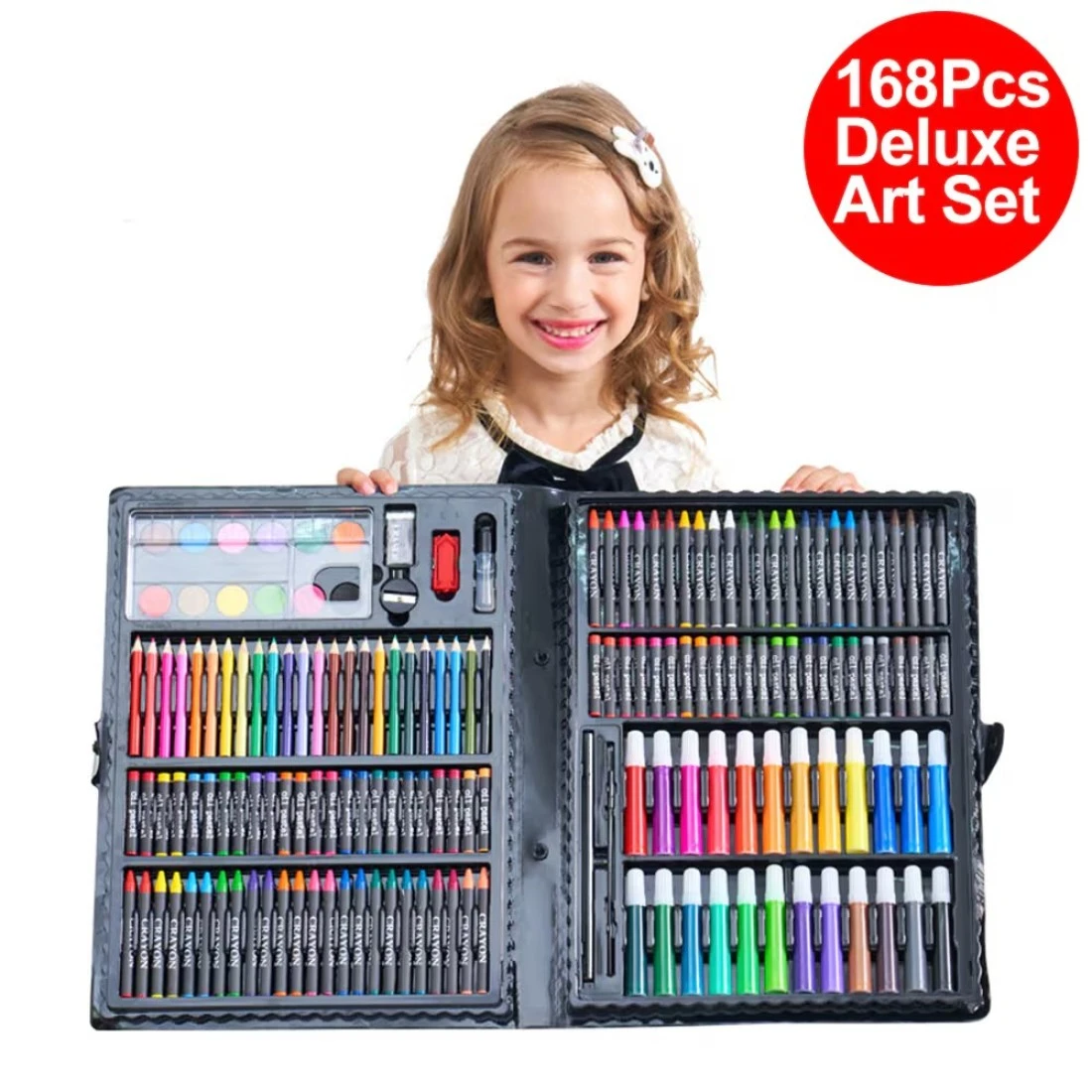 Generic-168pcs Deluxe Art Set Drawing & Painting Kit with Markers Color Pencils Crayons Oil Pastels Watercolor Cakes Storage Case and Accessories Art Supplies for Children Beginners Students
