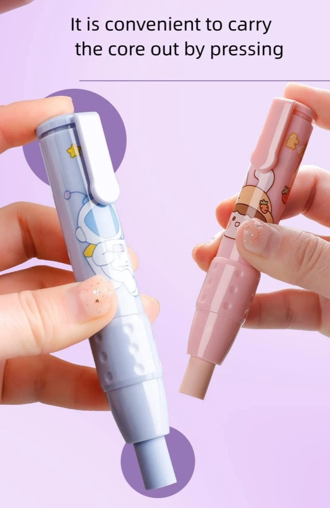 Cute Pencil Creative Stationery Retractable Rubber Stick Erasers for Kids Creative Cartoon Pattern Cute Erasers Kawaii School Supply School Office Prize Stationary 4 PCS