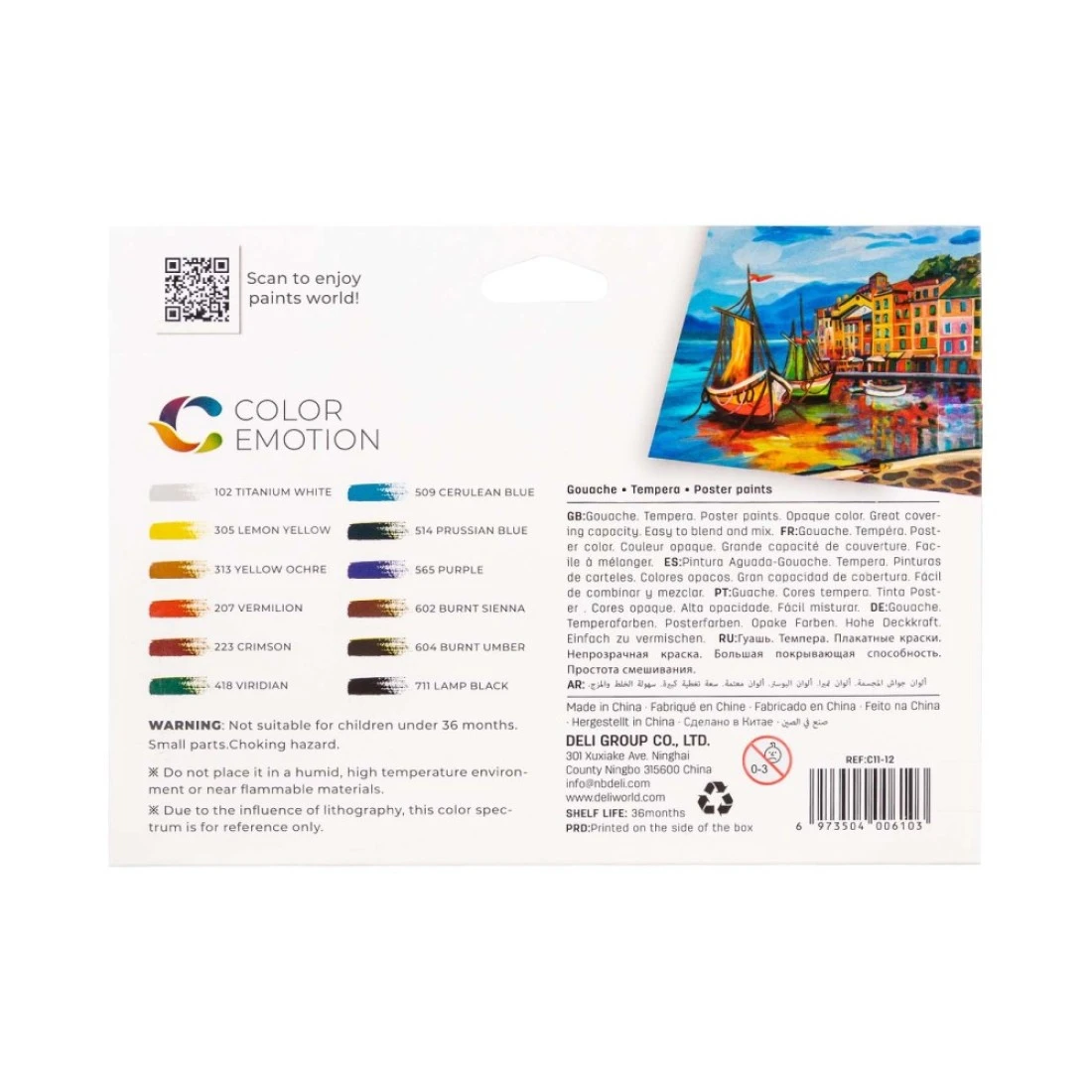 Deli Colour Emotion Gouache Painting Colours 12ml 12 PCS