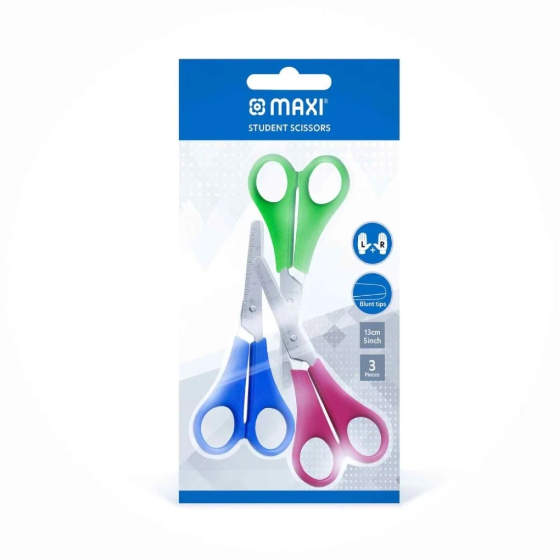 Maxi Student Scissors Multicolour 13cm 3 PCS