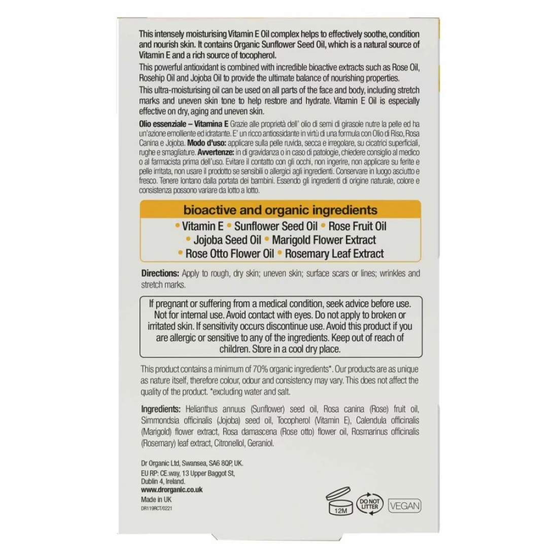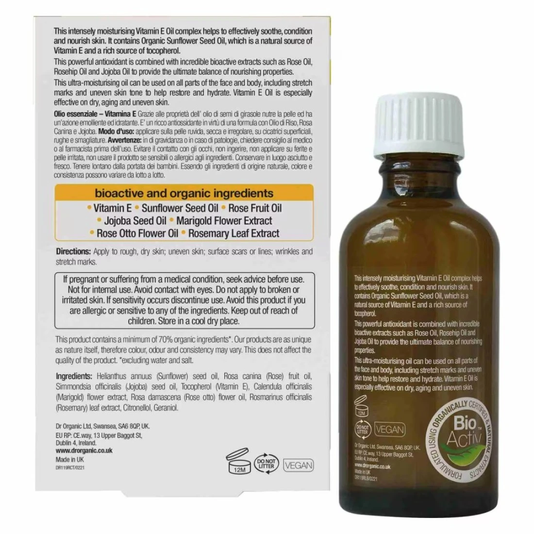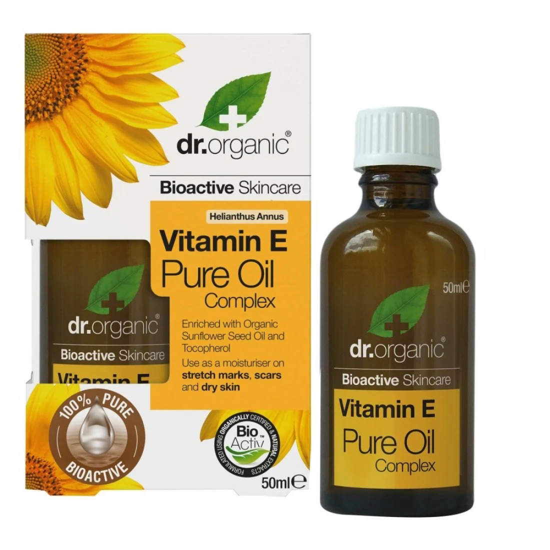 - Give your dry and uneven skin the complete nourishment with the added benefits of bioactive vitamin E and other organic ingredients as you use dr organic Vitamin E Pure Oil