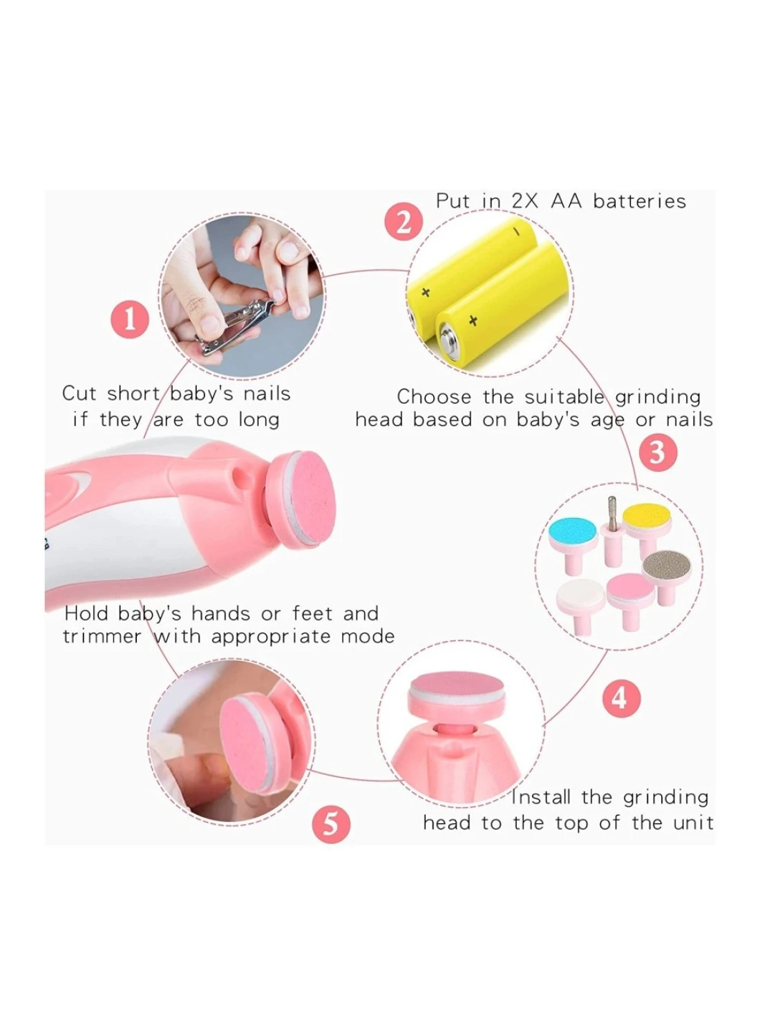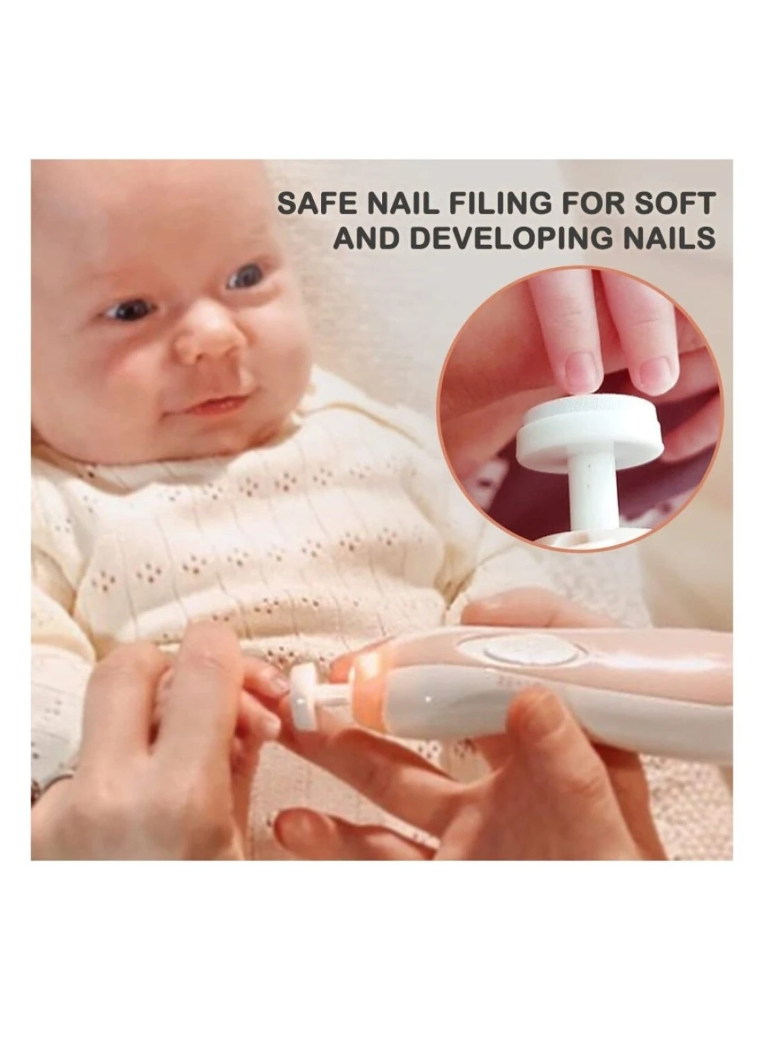 Electric Baby Nail Trimmer with LED Light - Safe & Gentle Nail File for Newborns & Toddlers 6 Grinding Pads for Toes & Fingernails, Quiet Motor, Portable Infant Nail Care Kit - Pink