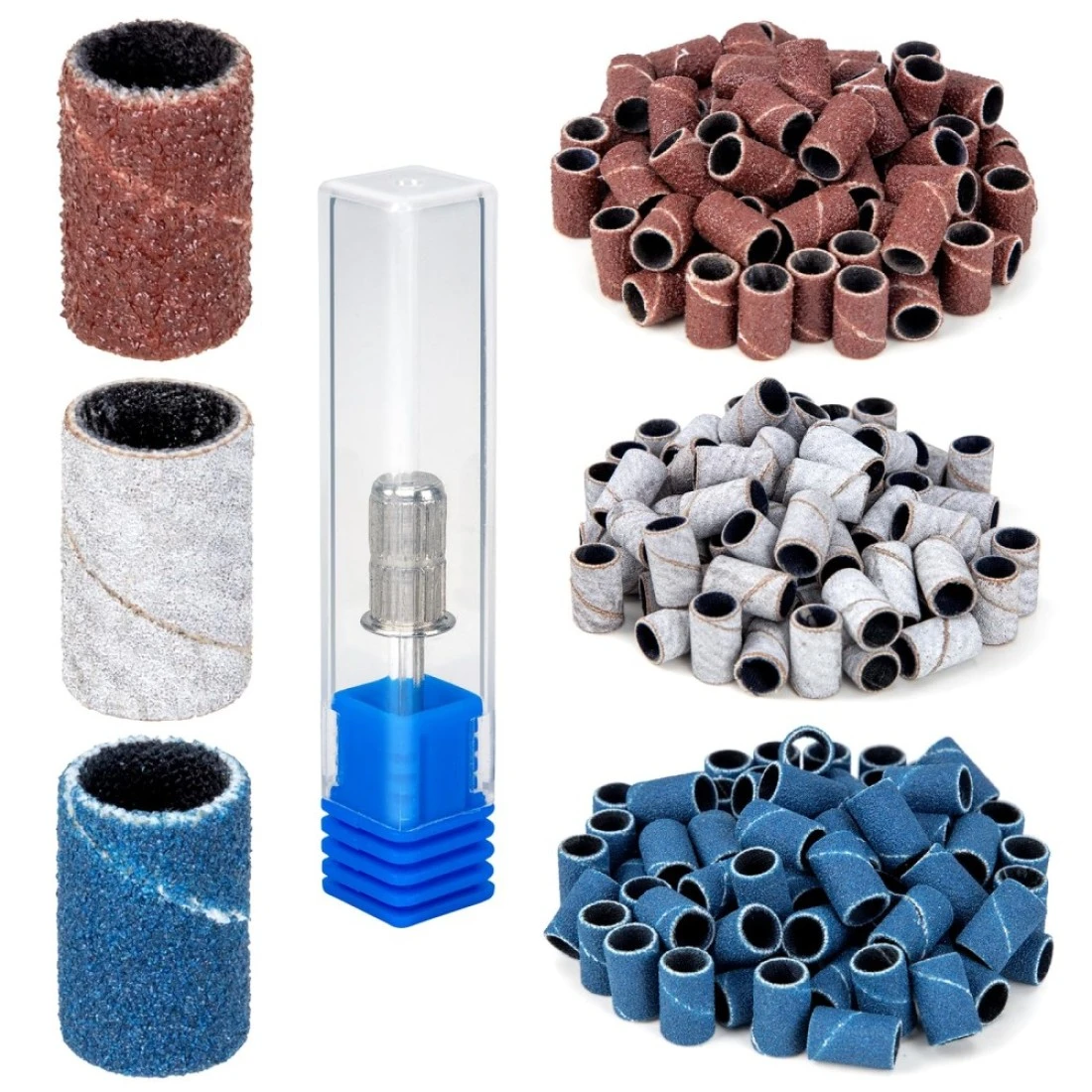 Madenia Nail Drill Bits Sanding Bands for Nail Drill, #80#150#240 Grit 210 Pcs Sanding Bands Set for Acrylic Gel Nails Manicures Pedicures Tools