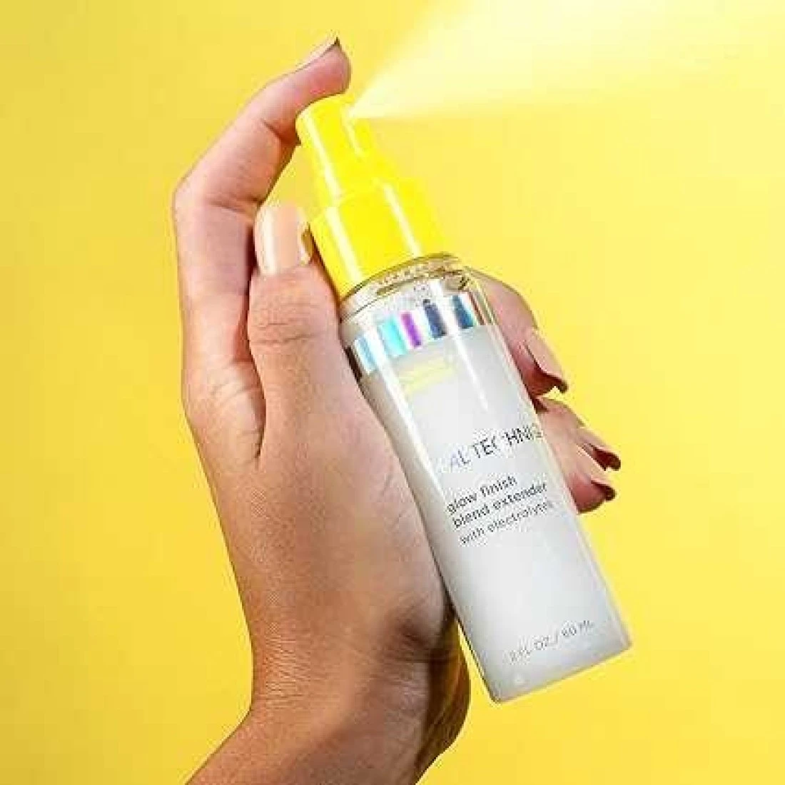 - Set, freshen, and blend while locking down you makeup base with the all in one spray 2 fl oz Real Techniques Glow Finish Extender Setting Spray