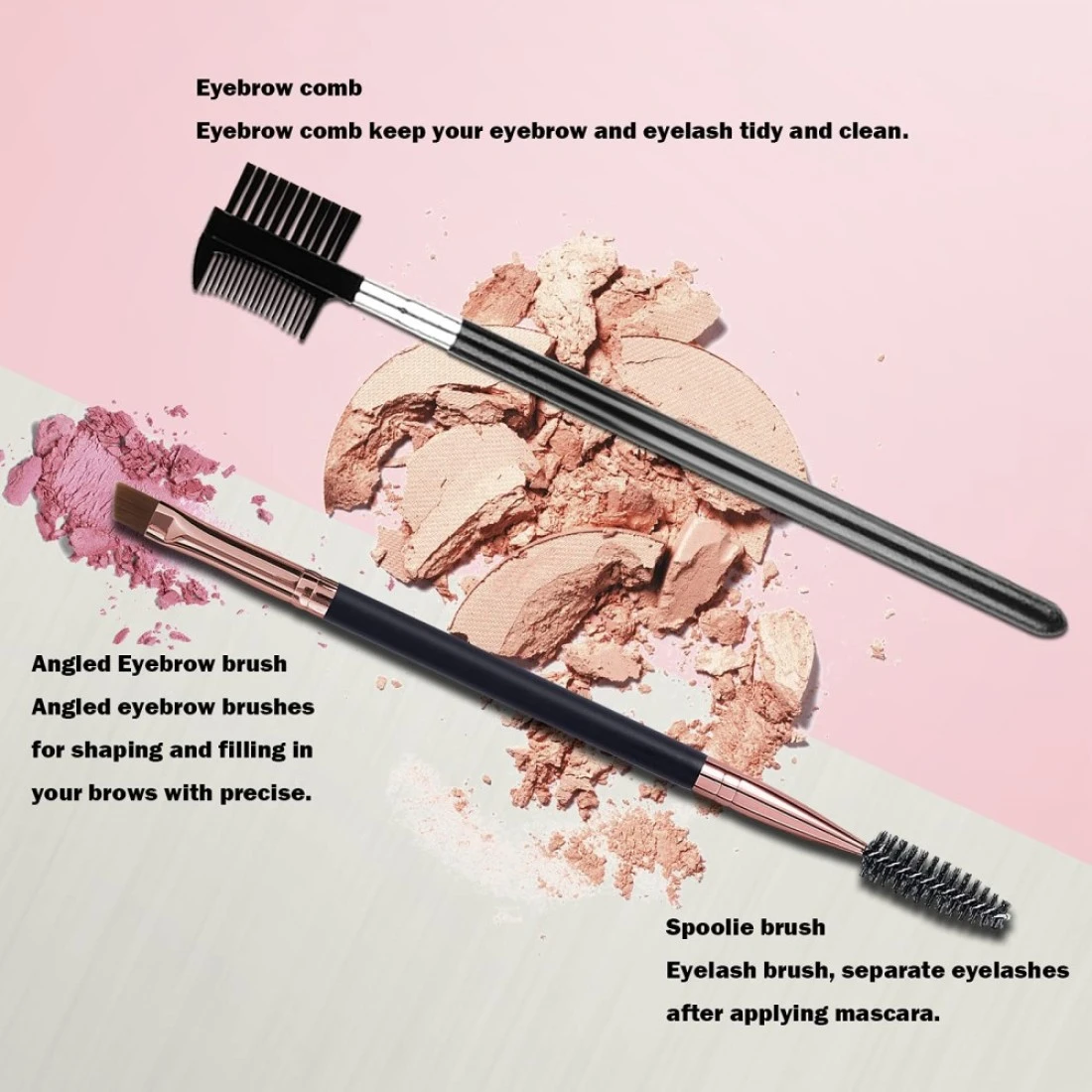 Duo Eyebrow Brush Eyebrow Brush Eyelash Comb and Eyebrow brush Professional Angled Eye Brow Brush and Spoolie Brush Set BlackBlack