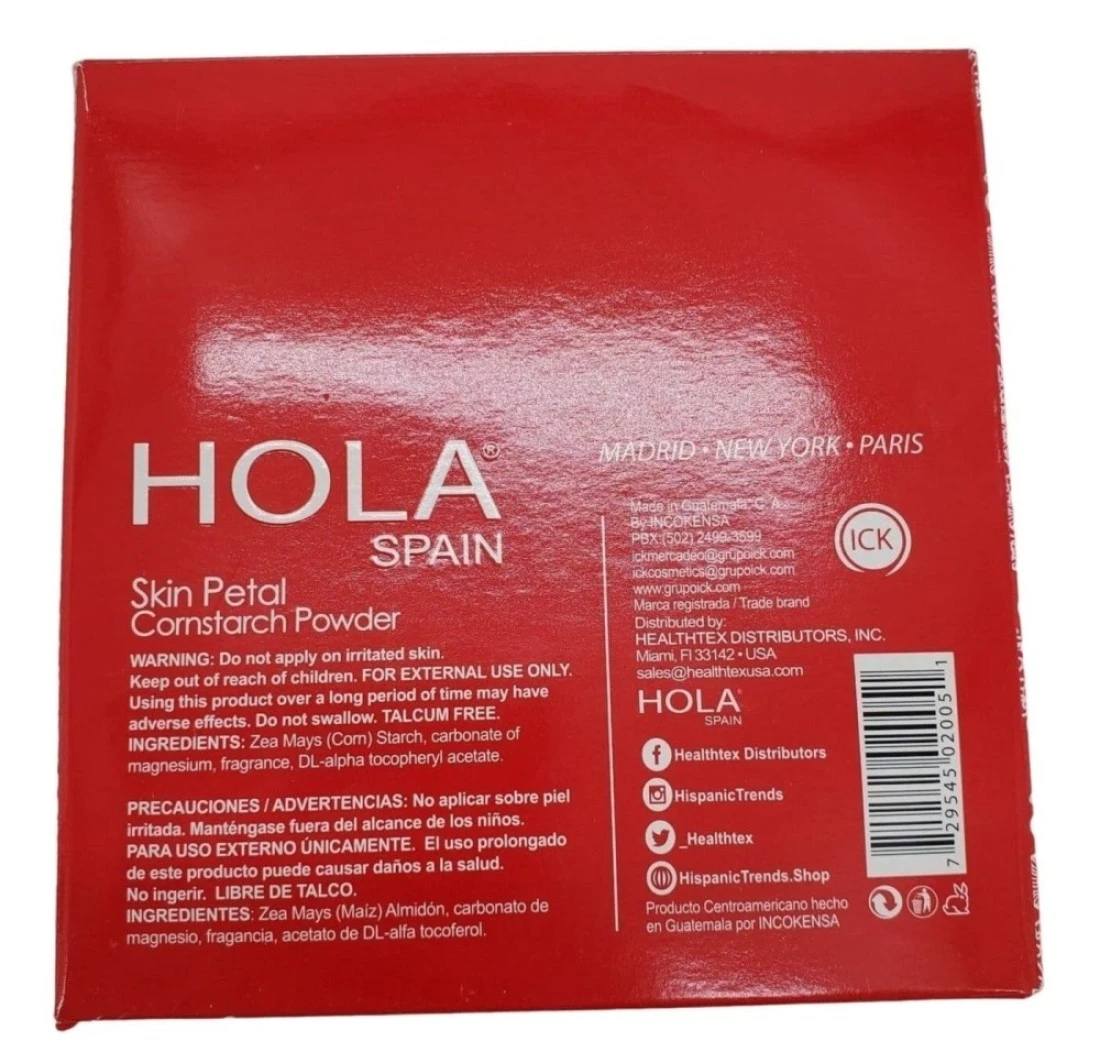 Hola Spain Skin Petal Body Talc Dusting Powder & Puff 4 oz. This fantastic powder can be used on the face or all over the body as an talc. With a beautiful light fragrance and pure fine talc.