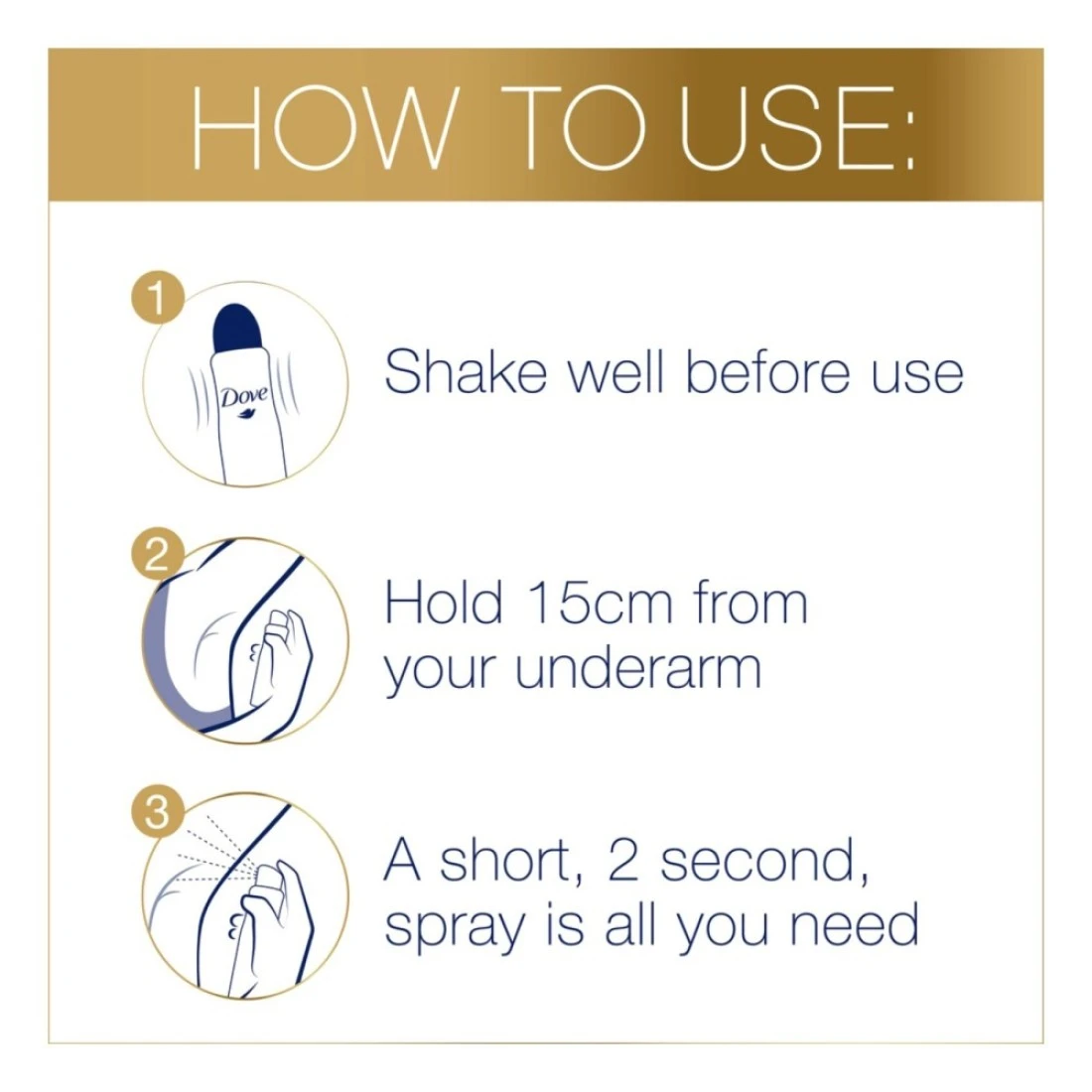 - HOW TO USE: Shake the deo spray can well, then hold it 15cm away from your skin. Spray for 2 seconds under each underarm for long-lasting freshness, protection and soft and resilient skin.