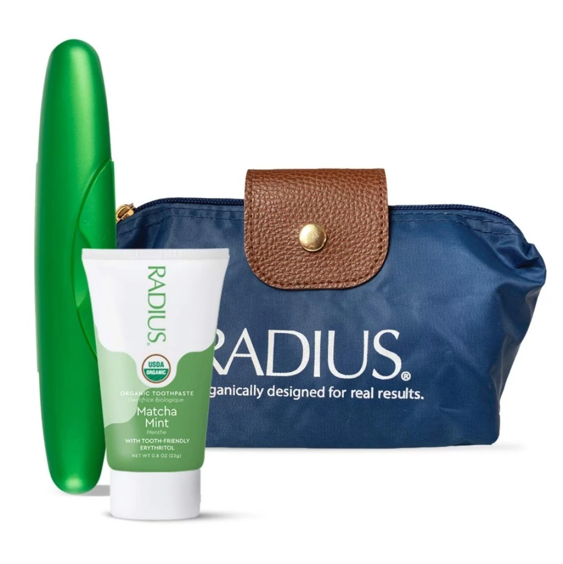 [INNOVATIVE] Want a unique holiday gift that will start your loved one’s new year with a BIG SMILE? Our Deluxe Toiletry Case Kit contains products that are sustainable and designed with the traveler in mind. [DESIGNER] Our award-winning travel cases have a patented “living hinge” technology for streamlined opening and a snap lock for secure, no-leak closure. Our beautiful Emerald Green color was created for those who adore that luxury travel. [CLEAN IS WHAT COUNTS] Our cases are designed to be leak-free and keep your toothbrushes, razors, and soaps clean and safe during travel. Our certified organic toothpaste with no nasty additives will make you feel squeaky clean on-the-go! [SUSTAINABLE FROM THE START] Made on low-emission machinery, our travel cases are 100% recyclable. RADIUS goes the extra step to decrease our carbon footprint. Care for your teeth AND your Earth. [DELUXE TRAVEL BAG] Travel in style with this luxury blue travel bag that even Santa would be jealous of!
