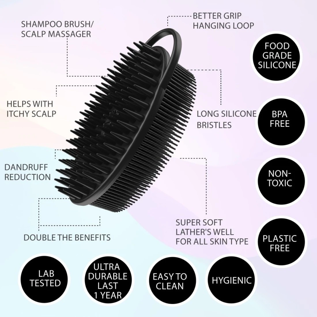 Avilana Style 3 2in1 Exfoliating Silicone Body Scrubber Shampoo Brush Scalp Massager Hygienic Shower Loofah Sponge Alternative for Deep Clean Soft Skin