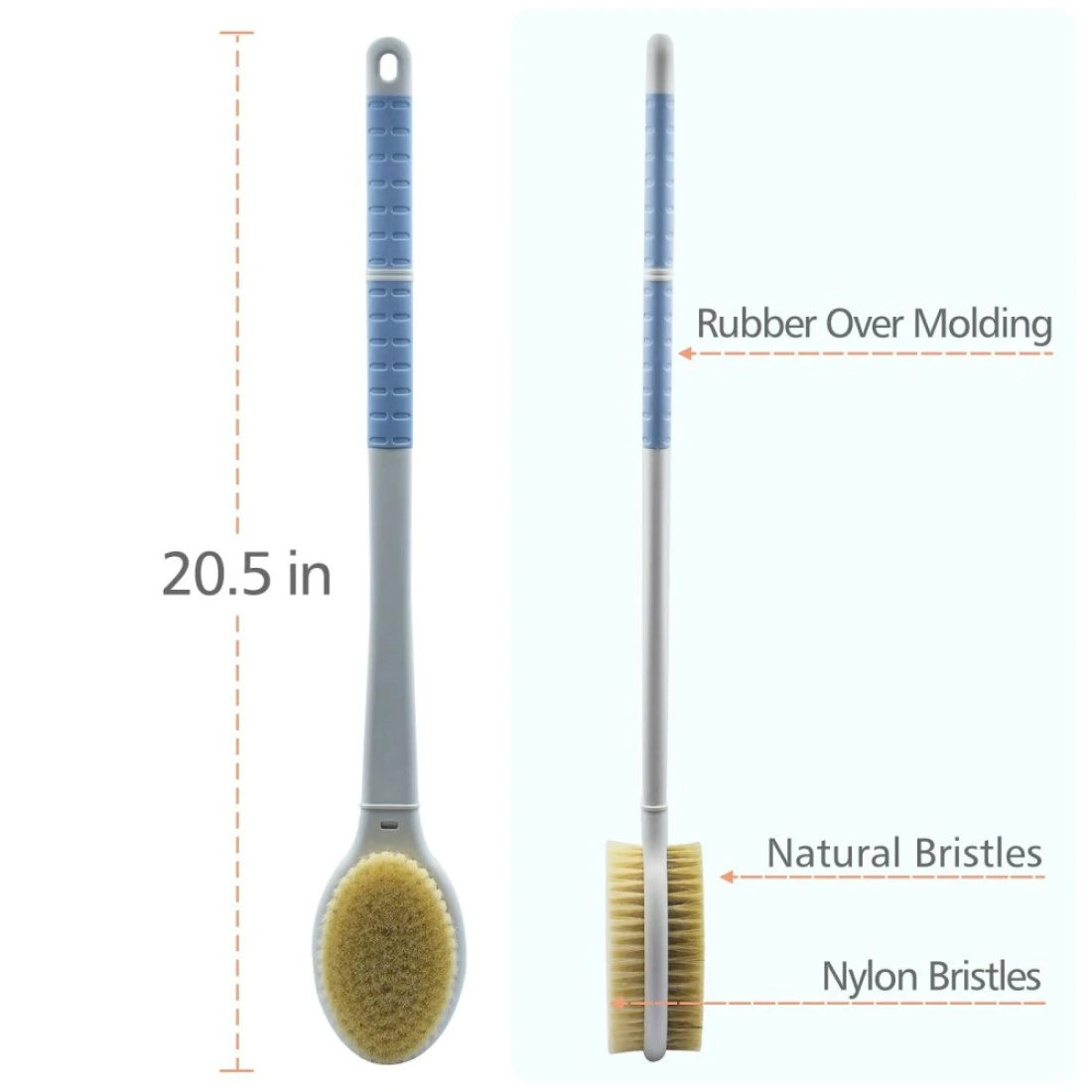 Shower Brush with Soft and Stiff Bristles,20.5" Extra Long Handle Dual-Sided Back Scrubber Bath Brush Body Exfoliator for Wet or Dry Brushing (EXTRA LONG HANDLE)