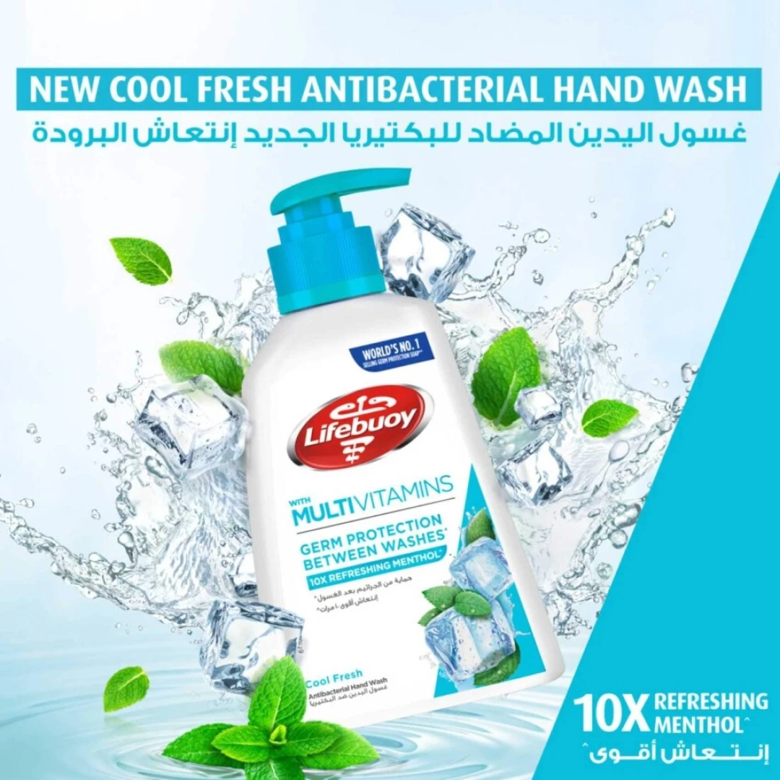 - WITH 10X REFRESHING MENTHOL': Lifebuoy Cool Fresh Antibacterial Hand Wash, infused with icy cool menthol, gives 12 hours long lasting freshness.