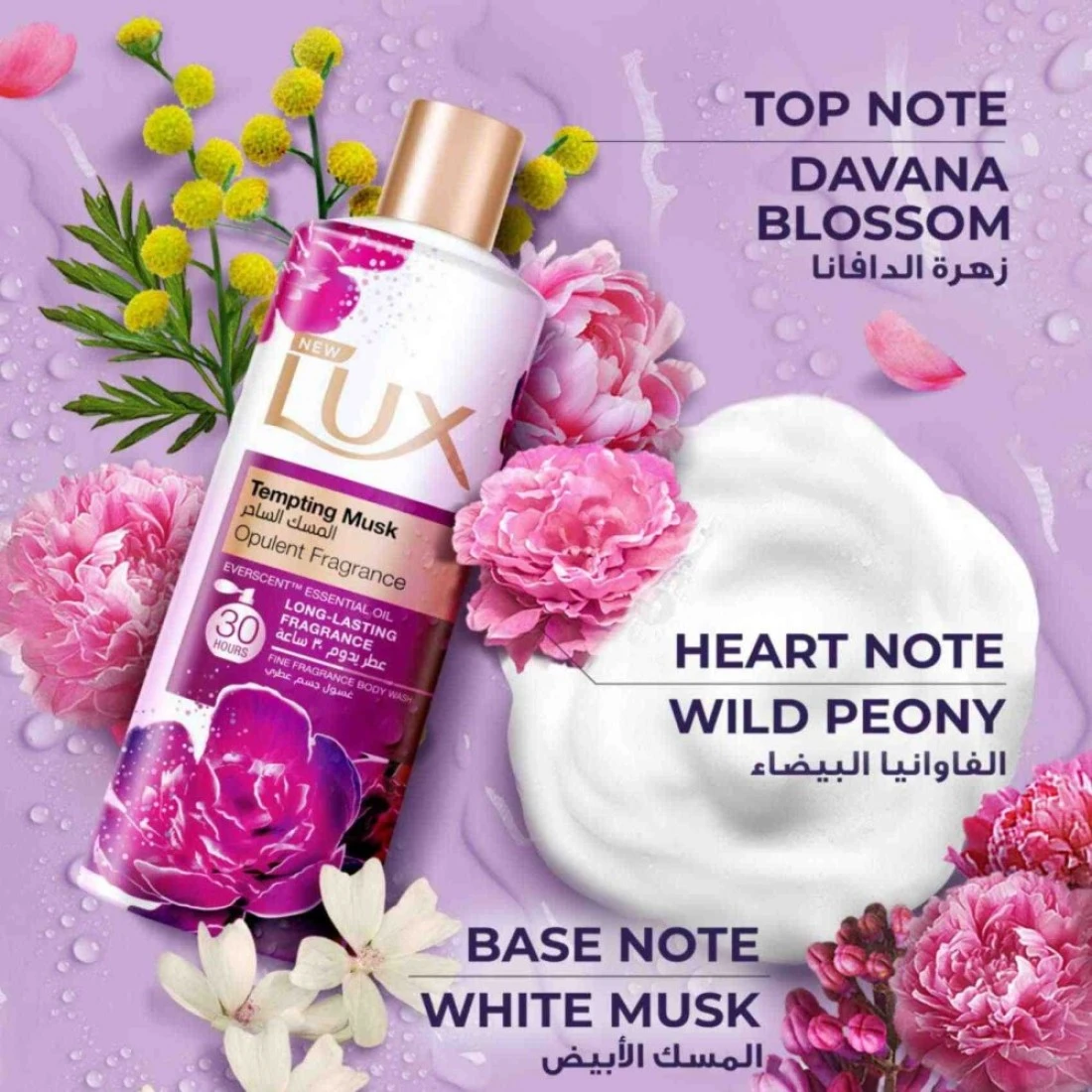Elevate your bathing routine with Lux Tempting Musk Opulent Fragrance Body Wash—your daily companion for feeling fresh and transforming your shower into a luxurious experience. Infused with Everscent™ Essential Oil and a unique blend of musk and peony fragrance, the shower gel enhances your sensory experience by delivering long-lasting fragrance that subtly perfumes your skin and envelops you in warm, earthy, subtly sweet and uplifting floral notes. Feel unstoppable all day with an opulent fragrance that leaves your skin feeling fresh and perfumed for up to 30 hours after your shower. Suitable for all skin types, the gentle and nourishing formula of this body wash leaves your skin feeling soft and rejuvenated after every wash. Lux Tempting Musk Perfumed Body Wash is perfect for those who appreciate both luxury and efficacy in their skincare routine. Experience the sophisticated blend of fragrance and nourishment with every shower. Unleash your dazzling confidence with this extraordinary, 30-hour long-lasting opulent fragrance. Explore the world of Lux and discover a range of premium fragrances to elevate your daily rituals. Our opulent fragrances are available in 5 variants: Romantic Hibiscus, Magical Orchid, Tempting Musk, Soft Rose and Velvet Jasmine. Discover the world of Lux. From shower gels to hand washes, we help give you and your family a luxurious shower and cleansing experience at home. We’ve been working with the world’s best perfumers to create opulent fragrance skin treats for you to enjoy. Transform your daily shower into an indulgent one that will make you feel special every single day.