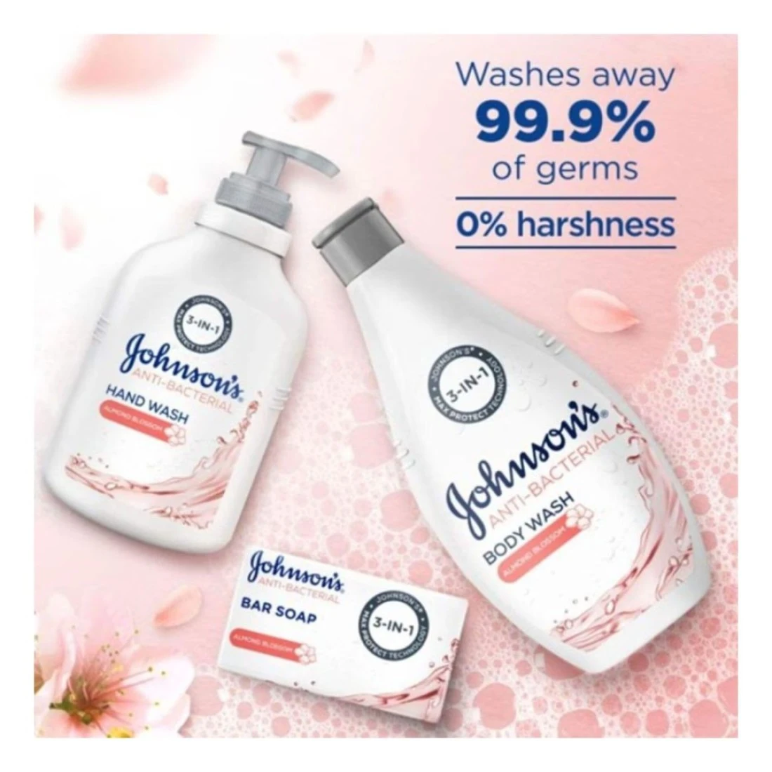 Johnson's Anti-Bacterial Almond Blossom Body Wash is a gentle 3-in-1 formula that combines MAX PROTECT germ-removal technology and pure Glycerin – a 100% natural origin moisturiser.Infused with a caring almond blossom fragrance, Johnson's Anti-Bacterial Almond Blossom Body Wash effectively washes away 99.9% of germs, dirt and bacteria while preserving your skin’s natural moisture. It is gentle enough to use on the face area and rinses perfectly clean even in cold water. Keep your skin fresh, clean and moisturised with Johnson's Anti-Bacterial Almond Blossom Body Wash!