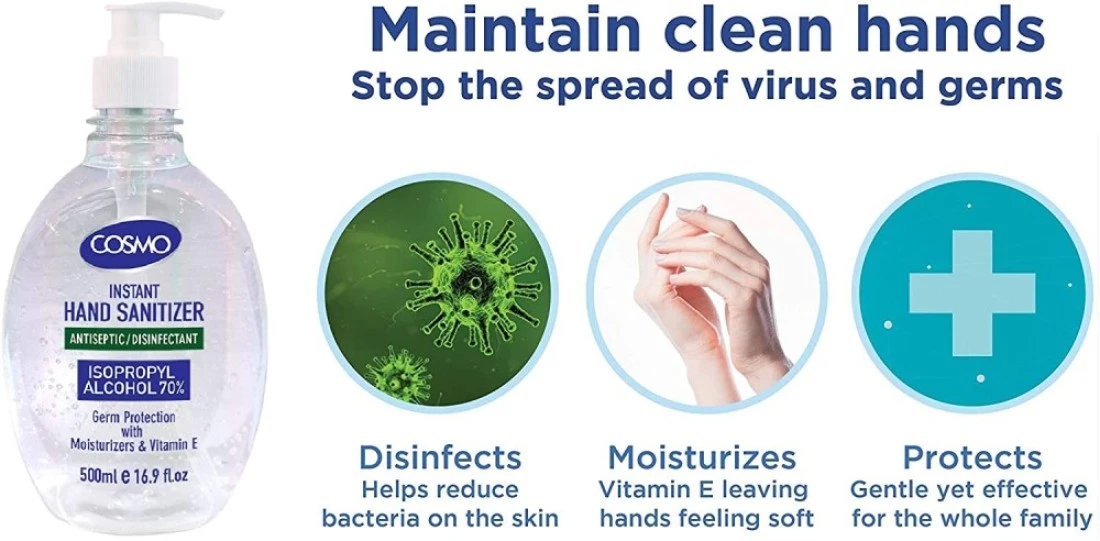 Cosmo Instant Hand Sanitizer Antiseptic/Disinfectant Gel - 500ml Pack Of 2