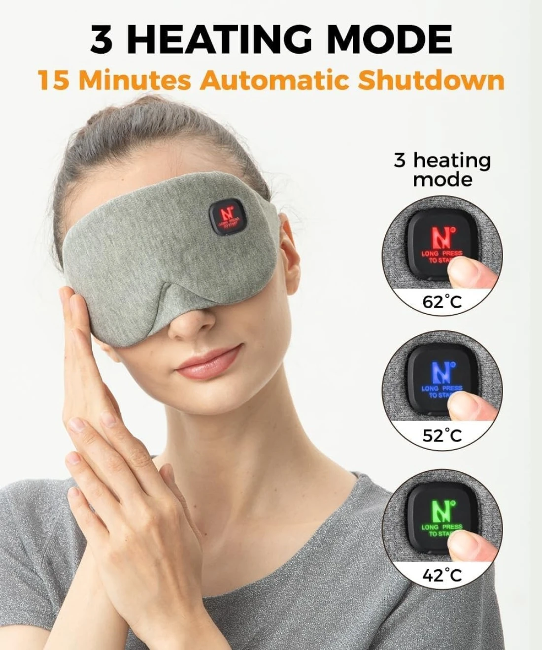 Cordless Heated Eye Mask Comparison in Our Store Heated Eye Mask(Grey) Buying Options Heated Eye Mask (Blue) Add to Cart Heated Eye Mask(Grey) Add to Cart Heated Eye Mask(Grey) Buying Options Customer Reviews 3.7 out of 5 stars 40 4.2 out of 5 stars 658 4.2 out of 5 stars 658 4.0 out of 5 stars 81 Price — $32.99 $ 32 . 99 $32.99 $ 32 . 99 — Power supply 3.7V,1000mAh 3.7V,1000mAh 3.7V,1000mAh 3.7V,1000mAh Material Cotton Silk Chenille, Satin Cotton Heating element Metal Fiber Metal Fiber Metal Fiber Graphene Heating Level 3 3 3 4 Auto-off 15min 15min 15min 15,30,45,60min