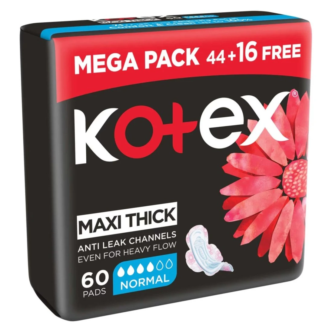 Kotex Maxi Protect Thick Pads Normal Size Sanitary Pads With Wings 60 Sanitary Pads