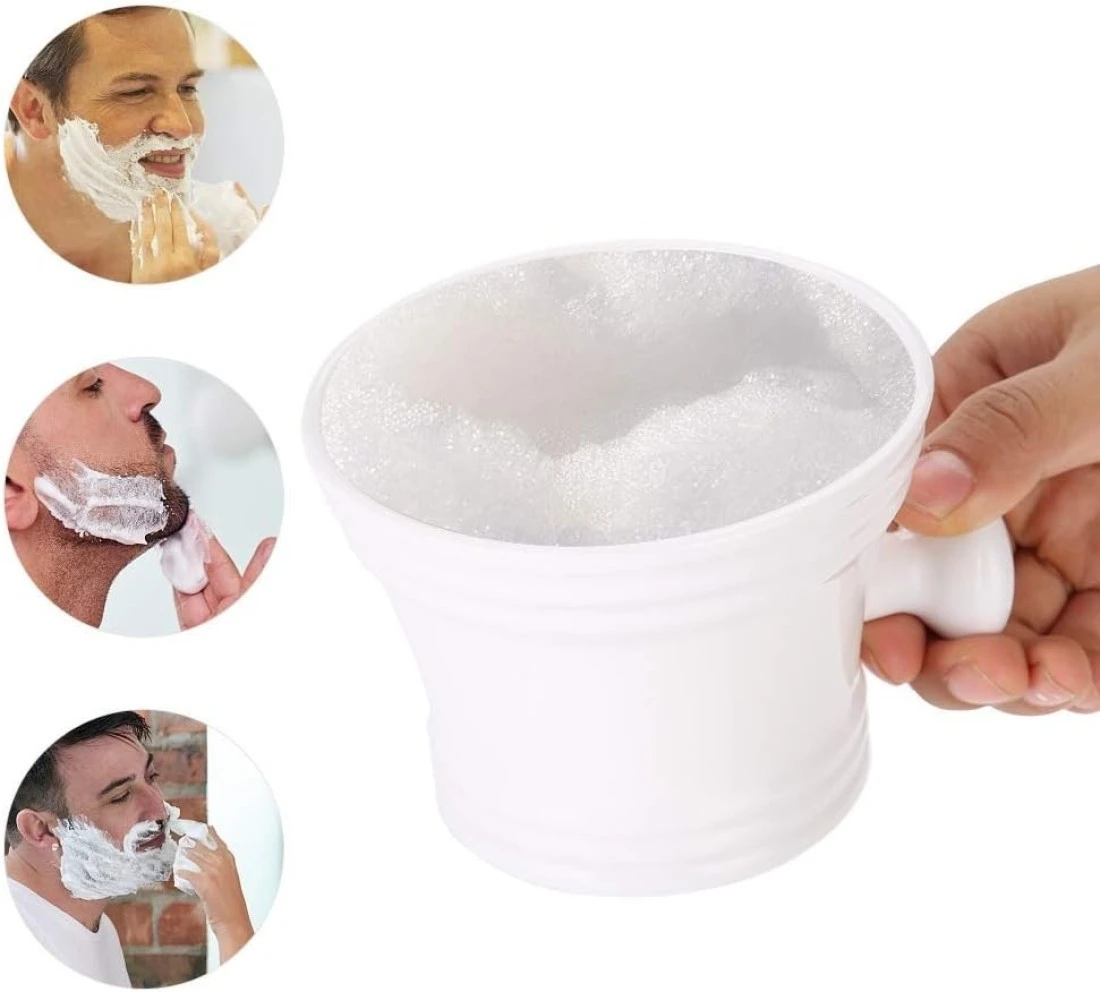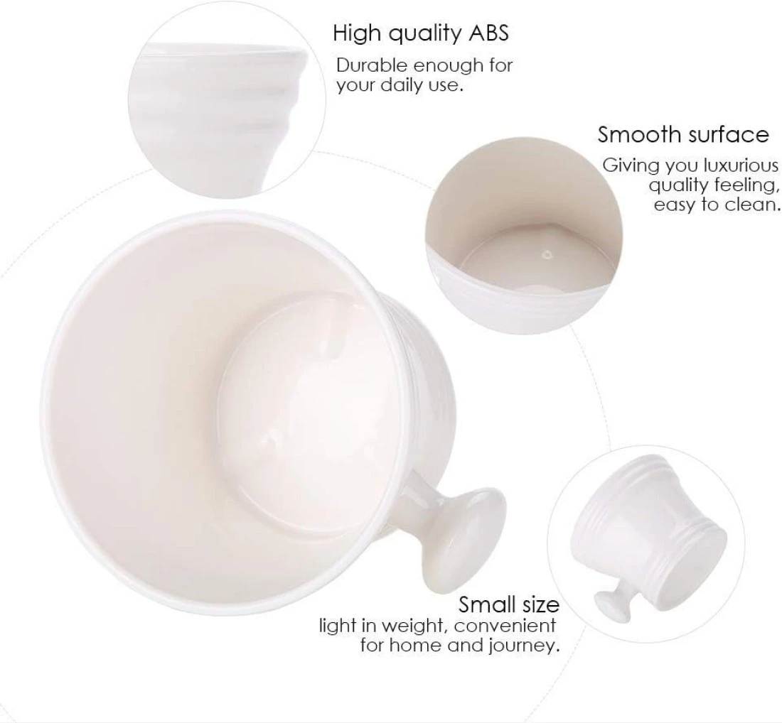 2 Colors Plastic Shaving Soap Bowl Foam Shaving Soap Cream Bowl with little handle Shaving Bowl for Men, Traditional Wet Shaving Factory Shaving Mug (White)