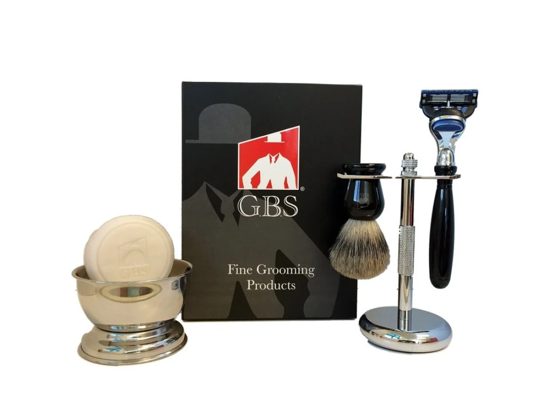G.B.S Premium Shaving Set for Men, Shaving Brush and Stainless Razor Stand, Shave Soap and Bowl