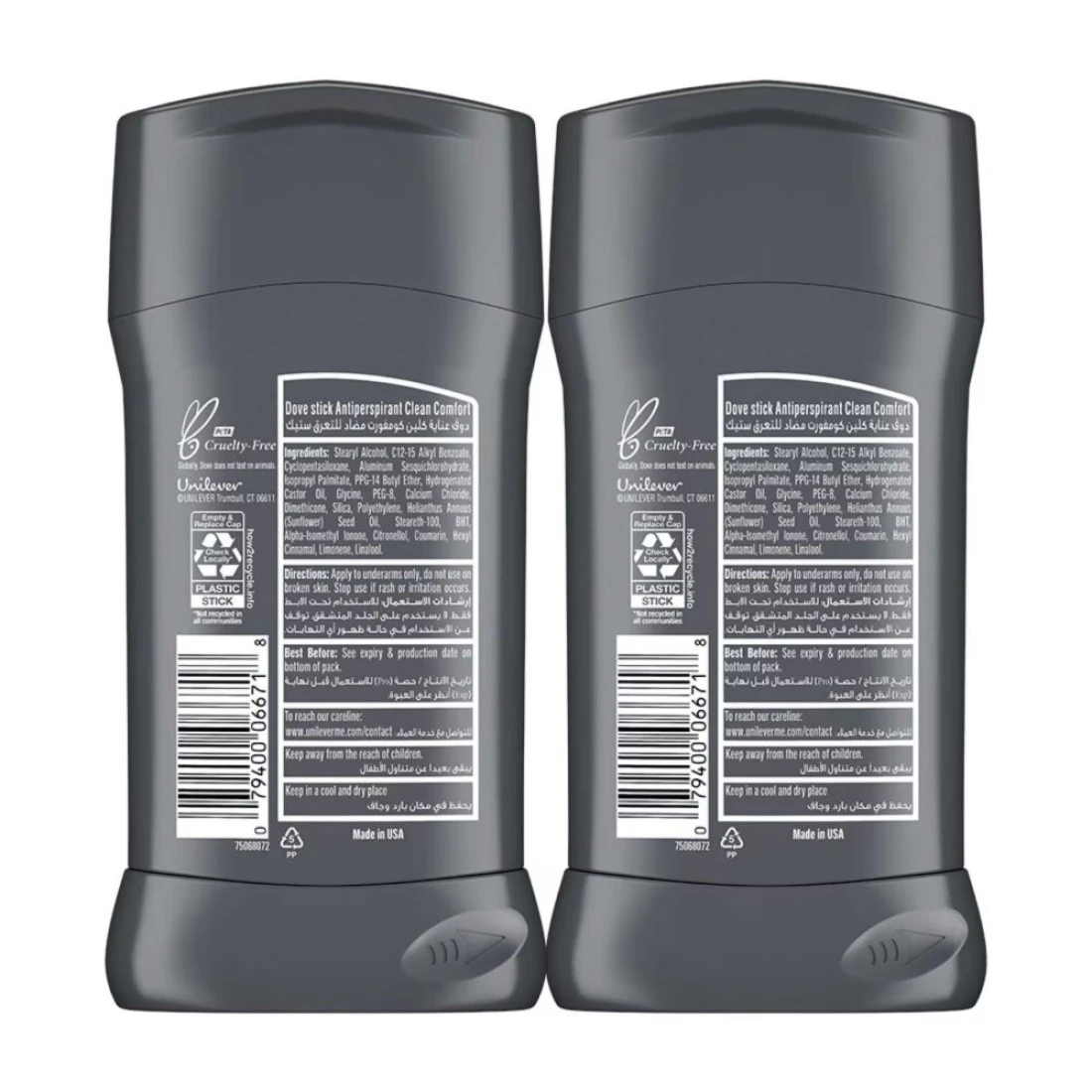 Dove Men+Care Antiperspirant Deodorant Stick 72H Protection Clean Comfort 76g Pack of 2