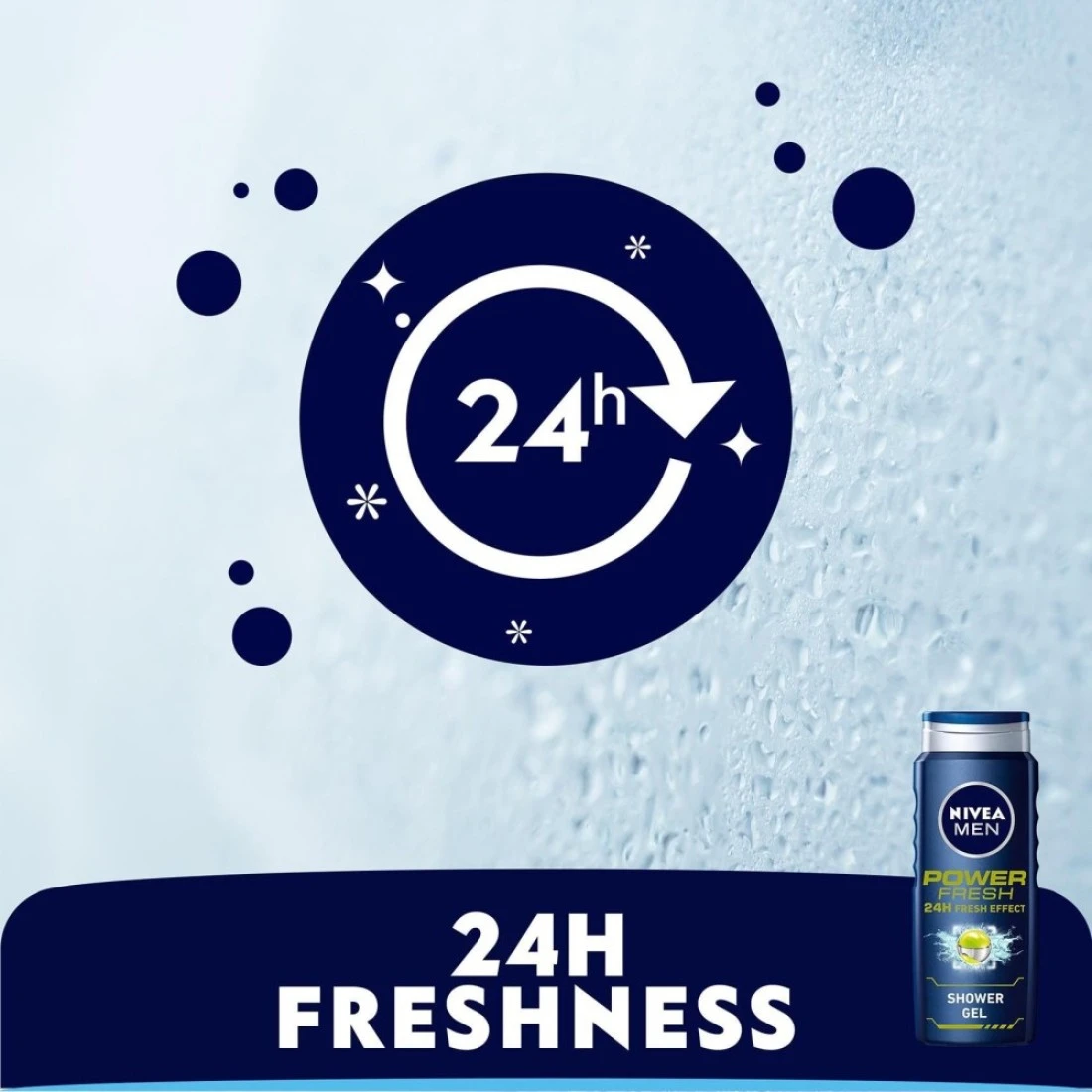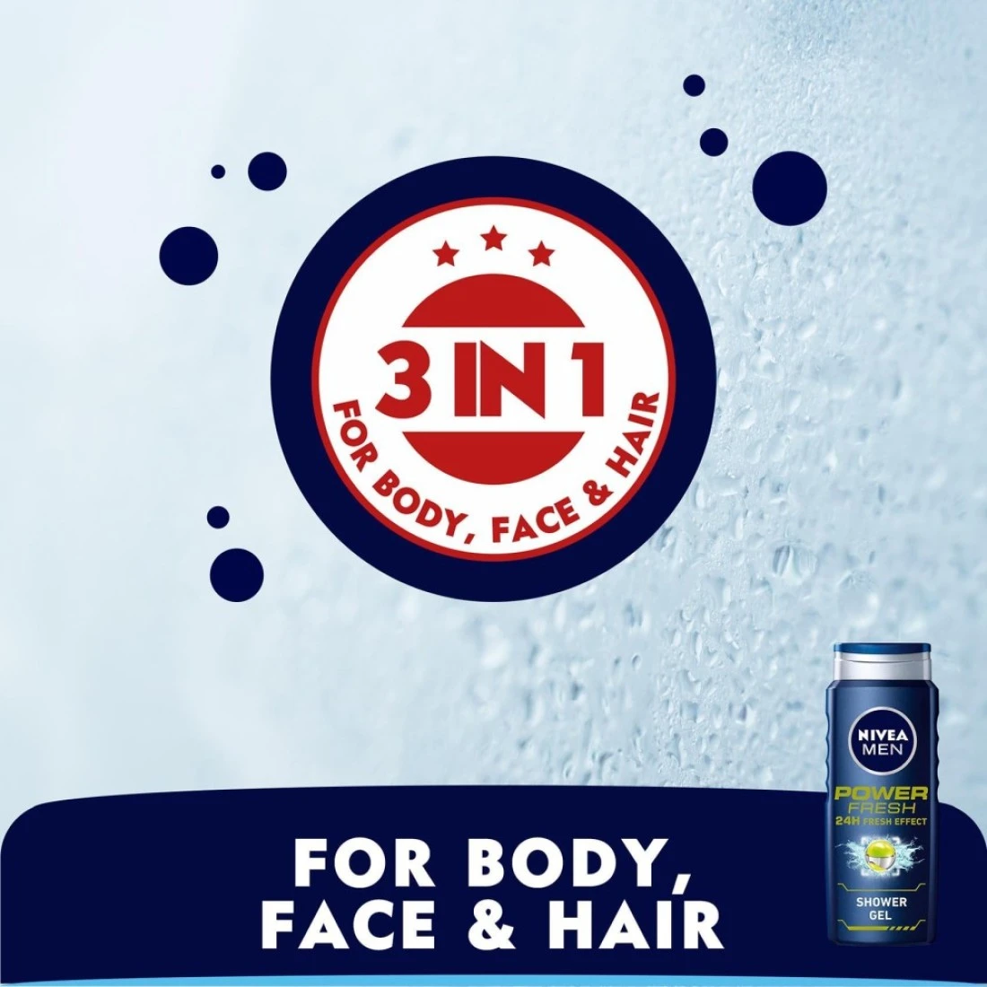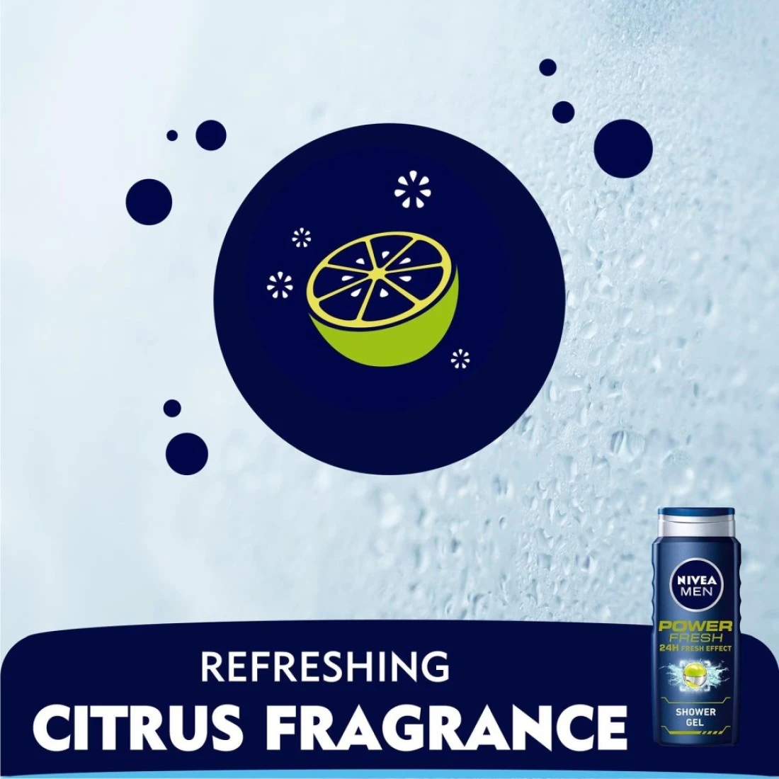 NIVEA MEN 3in1 Shower Gel Body Wash Power Fresh 24h Fresh Effect Citrus Scent 500ml
