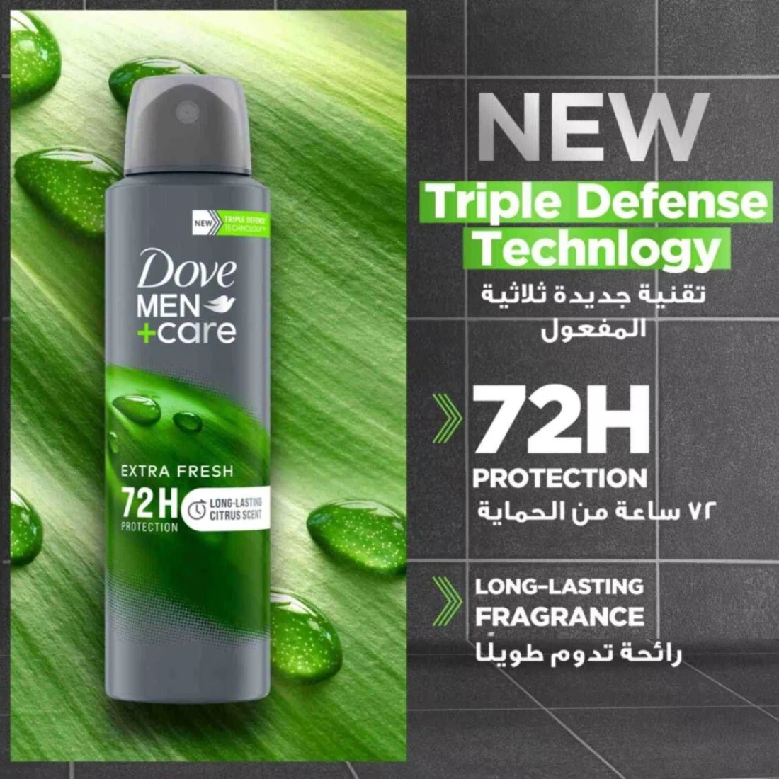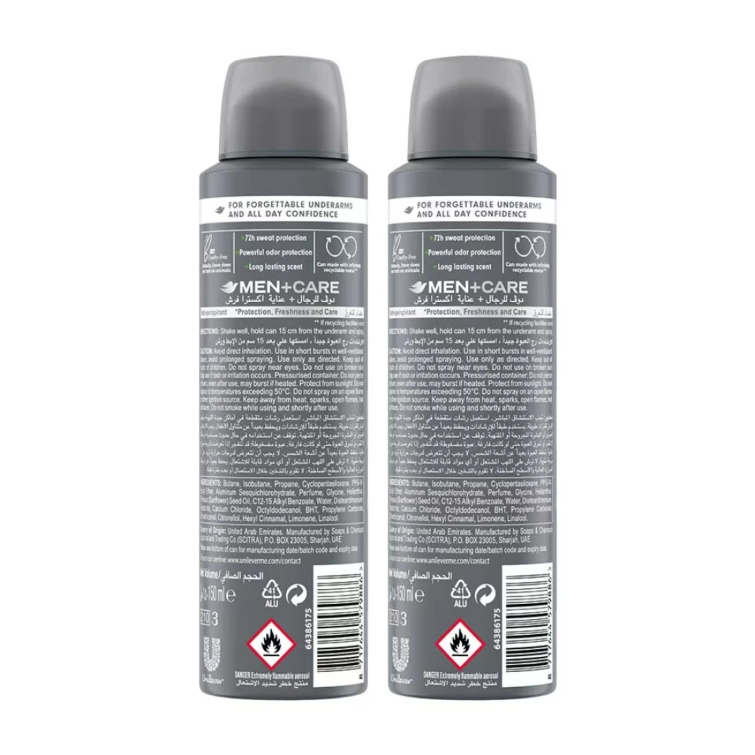 Looking for an uncompromising deodorant for men? Look no more! Get powerful protection against sweat and odor with Dove Men+Care Antiperspirant Extra Fresh Deodorant Body Spray. With Dove’s Triple Defense Technology for odor, sweat and care, the NEW Dove Men+Care, a range specially engineered for men, gives you better and complete protection, so smelling bad or feeling uncomfortable isn’t an added worry to your busy and stressful days. Be confident, wherever you go! Our powerful antiperspirant formula with 72-hour protection for long lasting freshness and care not only helps you get rid of the body odor but also controls sweat, so your armpits don’t feel wet, and you can be cool, calm and in control, no matter where life takes you. With ¼ moisturizing cream, this deodorant for men provides additional care and all-day protection without irritation. The formula helps you hydrate irritated skin while providing superior odor and sweat protection. Plus, the subtle citrus scent delivers long-lasting freshness, keeping you confident all day long. Get lasting sweat and odor defense + moisturized skin. Dove believes in caring for the planet, which is why, our aerosol deodorant spray cans are made with infinitely recyclable aluminium. In addition, globally, we do not test on animals and are certified cruelty-free by PETA. Trust the #1 dermatologist recommended men’s brand. Let Dove Men+Care tackle sweaty and smelly underarms while you focus on achieving your goals! Explore more from Dove to stay fresher, cleaner and confident.