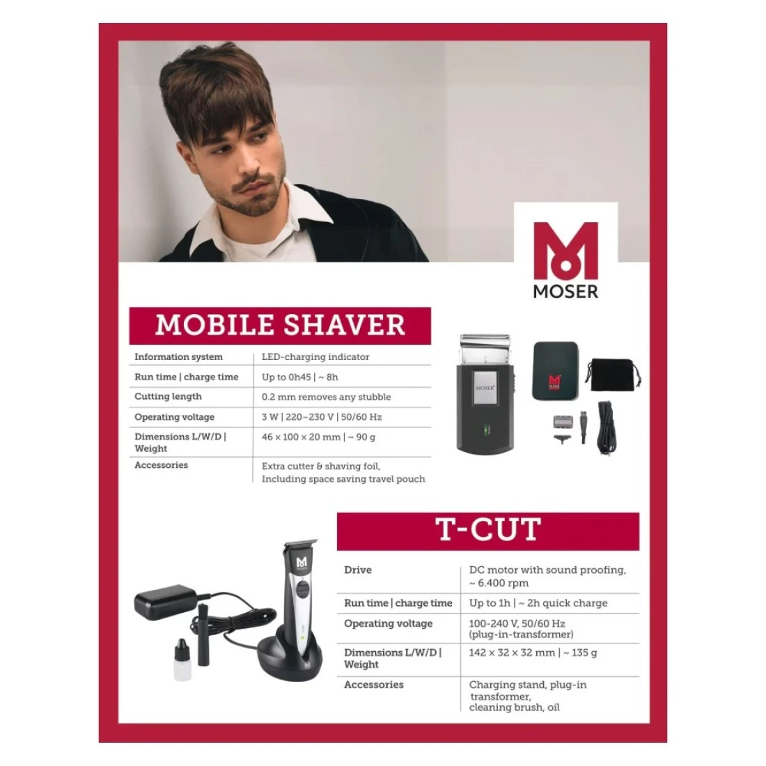 Moser T-Cut Professional Cordless Trimmer with T-Blade 1591-0170 Black and Cordless Mobile Shaver 3615-0052 Black