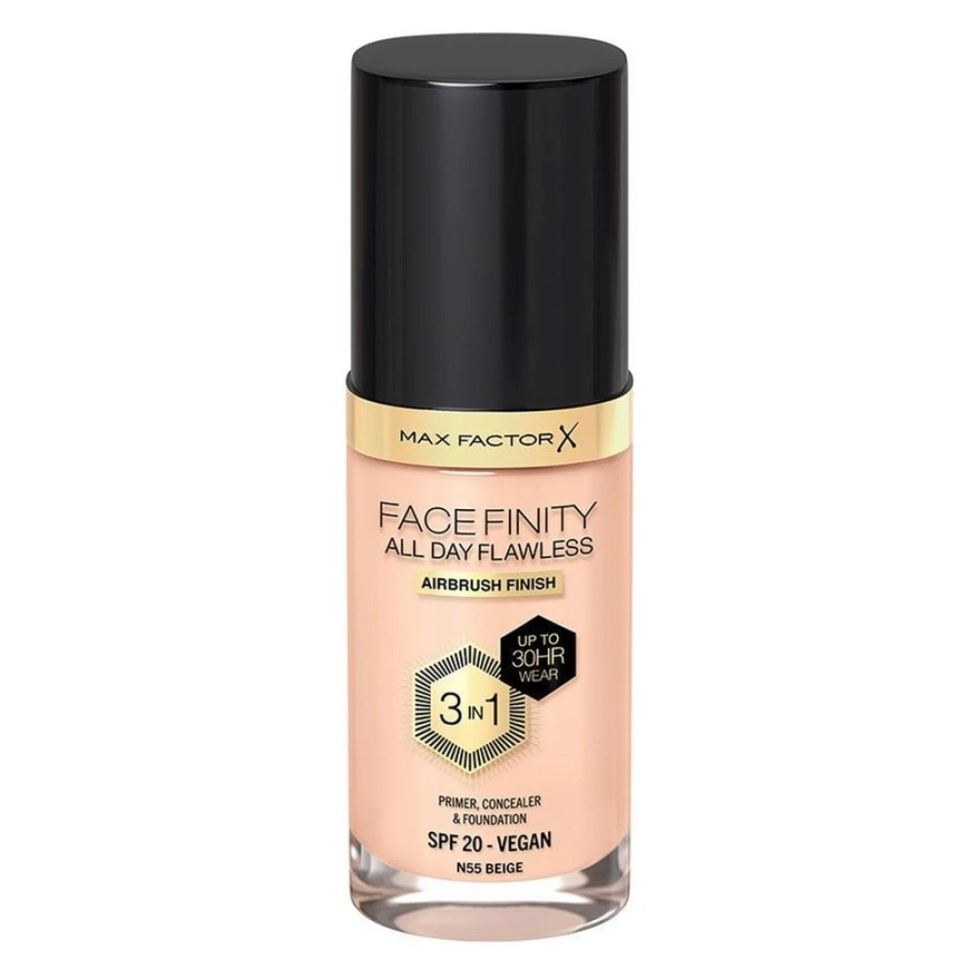 - Max Factor Face Finity All Day Flawless Primer Concealer and Foundation SPF20 N55 Beige 30ml