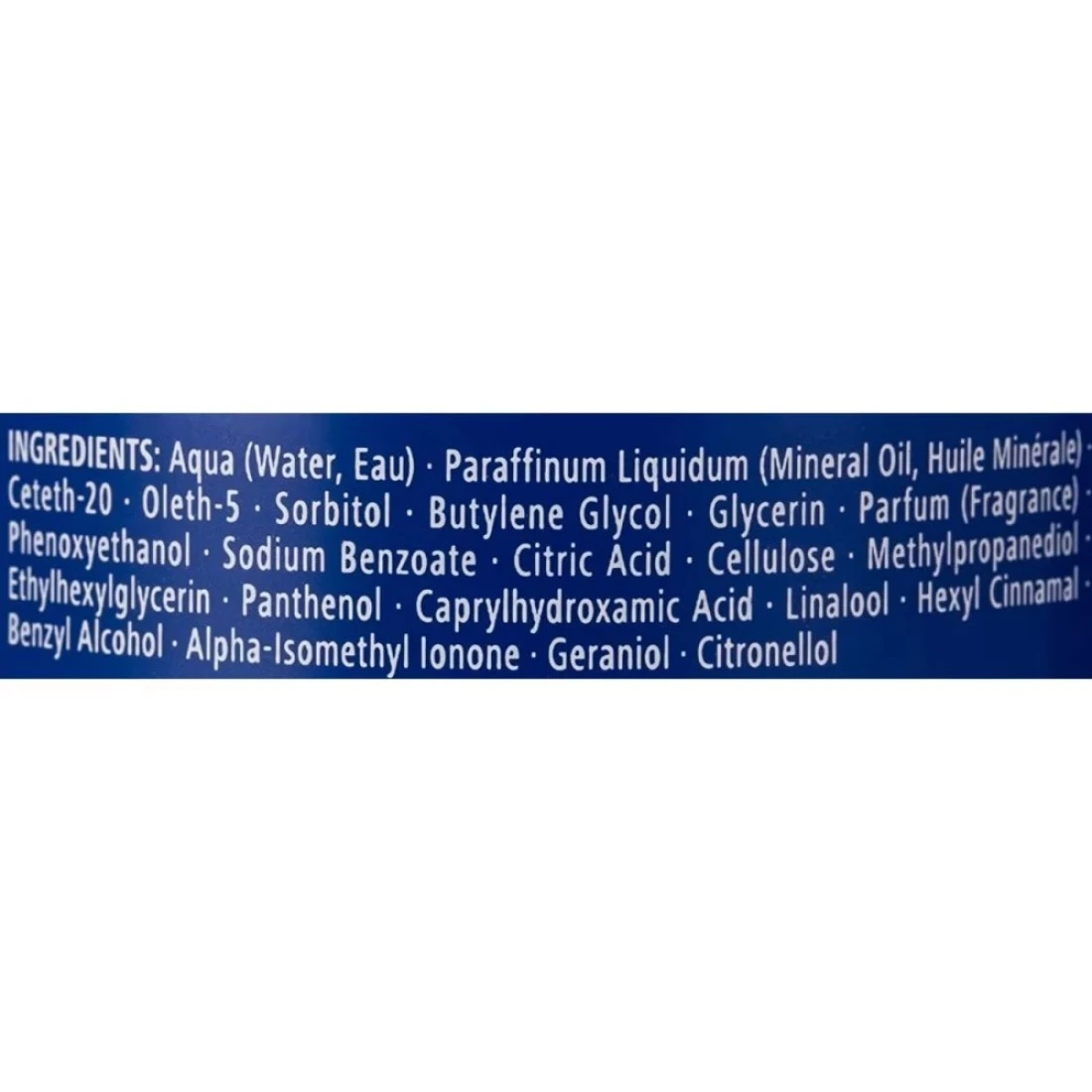 ingredients : Petrolatum, Trilaureth-4 Phosphate, Cetyl Palmitate, Aqua, Parfum, Cera Microcristallina, Cera Alba, Linalool, Panthenol, Tocopheryl Acetate, Arginine, Benzophenone-4, Copernicia Cerifera Cera, Propylparaben, Hexyl Cinnamal, Benzyl Alcohol, Alpha-lsomethyl Lonone, Geraniol and Citronellol.