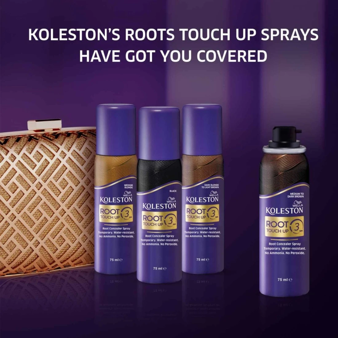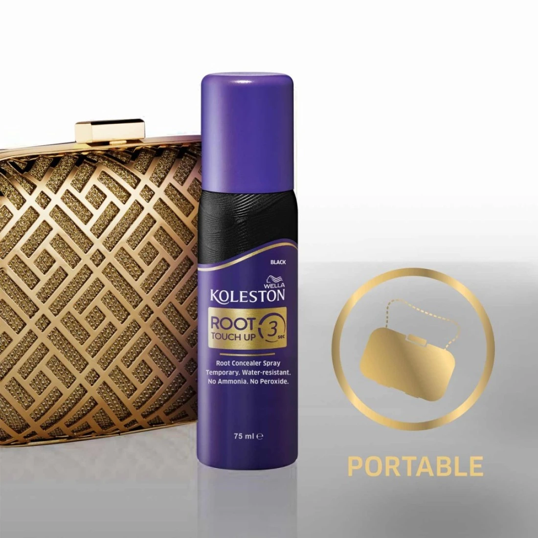 Wella Koleston Root Touch Up Spray Black 75ml is a convenient and easy-to-use spray that helps cover up grey roots and regrowth. The spray is designed to blend seamlessly with your existing hair colour providing natural-looking coverage that lasts until your next shampoo. with its lightweight formula, the spray is non-greasy and won't weigh down your hair. Simply spray onto dry hair focusing on the roots and gently blend with your fingertips for instant coverage. The compact size makes it perfect for travel or on-the-go touch-ups.