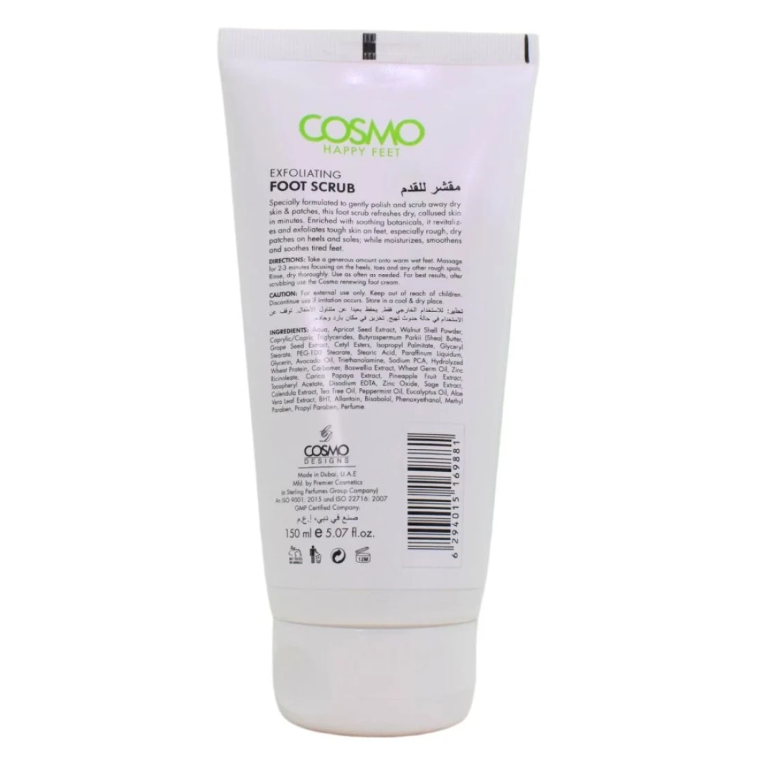 Cosmo Happy Feet Exfoliating Foot Scrub is a refreshing and invigorating scrub that helps to remove dead skin cells and reveal smoother softer feet. Enriched with cooling peppermint it provides a soothing and cooling sensation while exfoliating the skin. This foot scrub is perfect for those looking to pamper and revive tired achy feet. Its clear formula is easy to use and leaves feet feeling refreshed and revitalized.