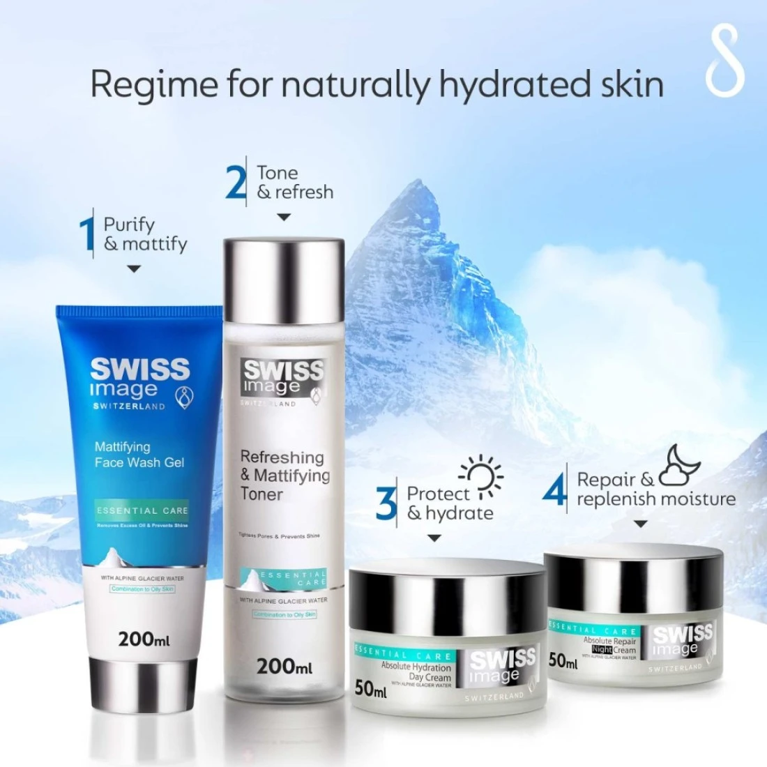 The Swiss Image Essential Care Refreshing & Mattifying Toner is a must-have for anyone with oily or combination skin. This toner helps to remove excess oil and impurities while balancing the skin's pH level. It leaves the skin feeling refreshed, mattified, and ready for the next step in your skincare routine. This toner is enriched with Swiss Alpine Glacier Water, which is known for its purifying and hydrating properties. It also contains Witch Hazel Extract, which helps to tighten pores and control oil production. With regular use, this toner can help to reduce shine and prevent breakouts, leaving your skin looking clear and matte all day long. To use, simply apply the toner to a cotton pad and gently swipe across your face and neck after cleansing. You can also use it throughout the day to refresh and mattify your skin. Follow with your favourite moisturizer for the best results. The Swiss Image Essential Care Refreshing & Mattifying Toner is a must-have addition to your skincare routine for a fresh, matte complexion.