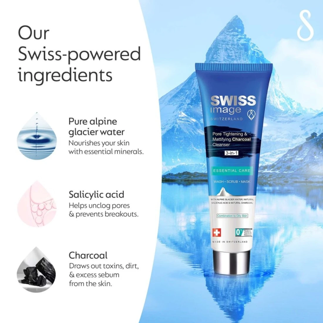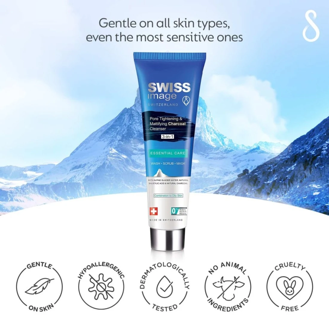 - A gentle mask enriched with Swiss Alpine Glacier Water Vitamin E and Natural Salicylic Acid that deep cleanses removes excess oil and reveals soft smooth and radiant skin