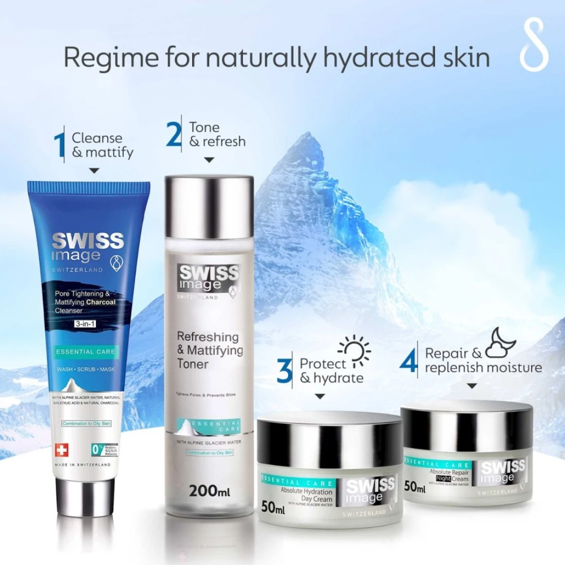 Swiss Image Essential Care Pore Tightening and Mattifying Clay Mask is a beige-coloured clay mask that helps to tighten pores and control excess oil on the skin. This mask is enriched with natural ingredients like Swiss Glacier Water White Clay and Witch Hazel Extract which work together to purify the skin remove impurities and absorb excess sebum. The clay mask also helps to mattify the skin leaving it looking fresh and shine-free. Suitable for all skin types this clay mask is an essential part of any skincare routine.