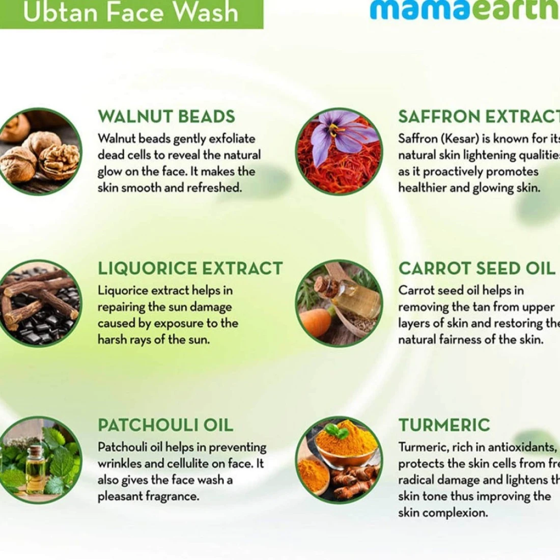 - Contains turmeric, saffron, and carrot seed oil