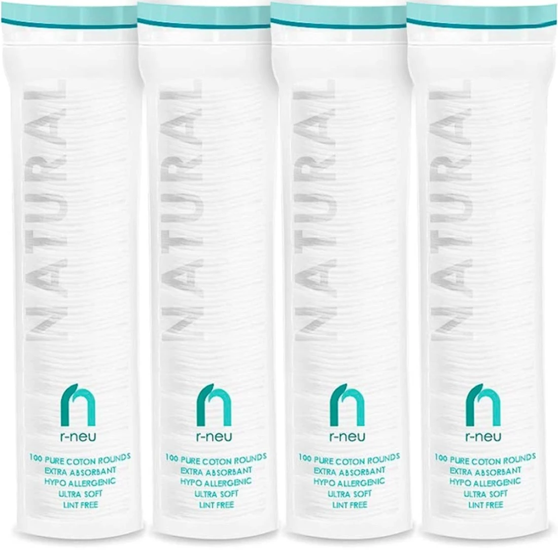 RNeu Premium Turkish Cotton Rounds 400 Count Stitched Waffle Textured 100 Pure Natural Cotton Pads for Face Hypoallergenic Makeup Remover 4 Pack of 100