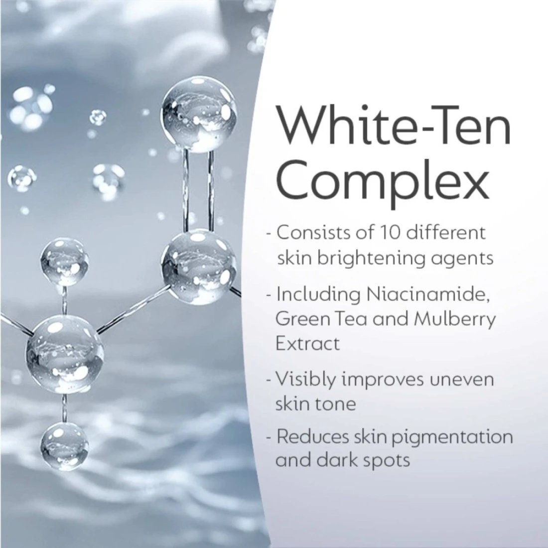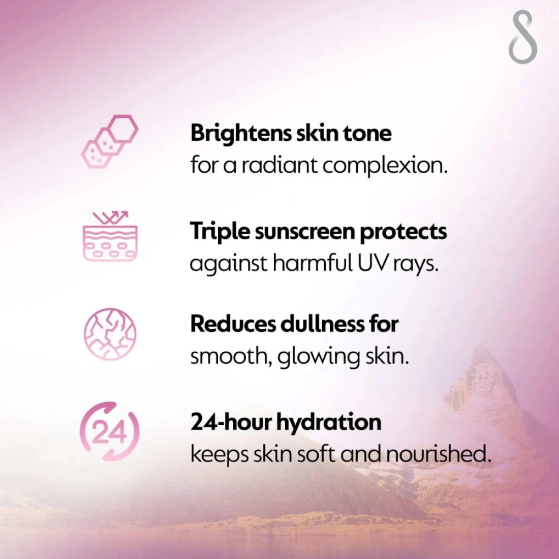 - Visibly brightens skin tone for a radiant complexion